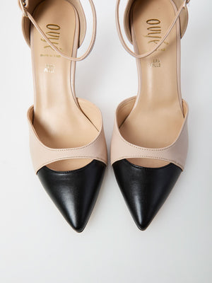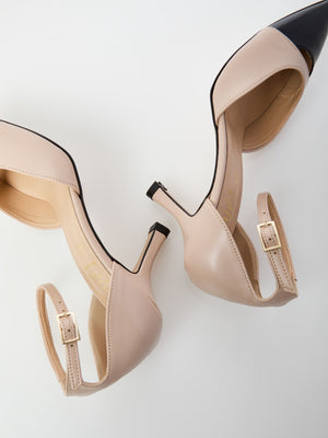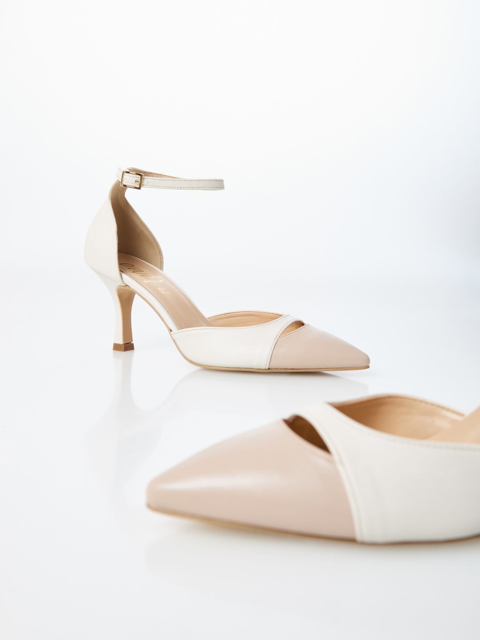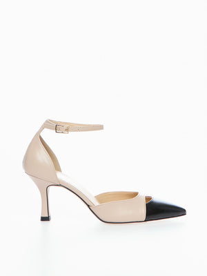 Dècolletè in pelle sintetica, cinturino alle caviglie, tacco 7cm