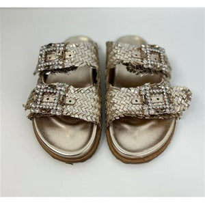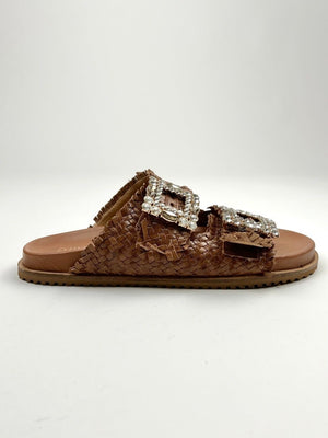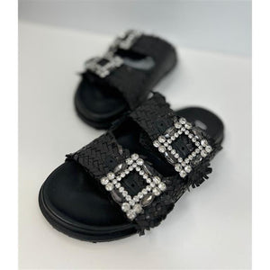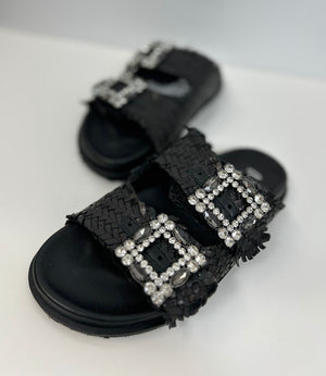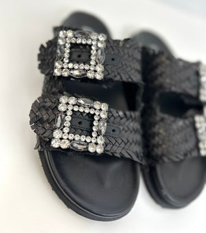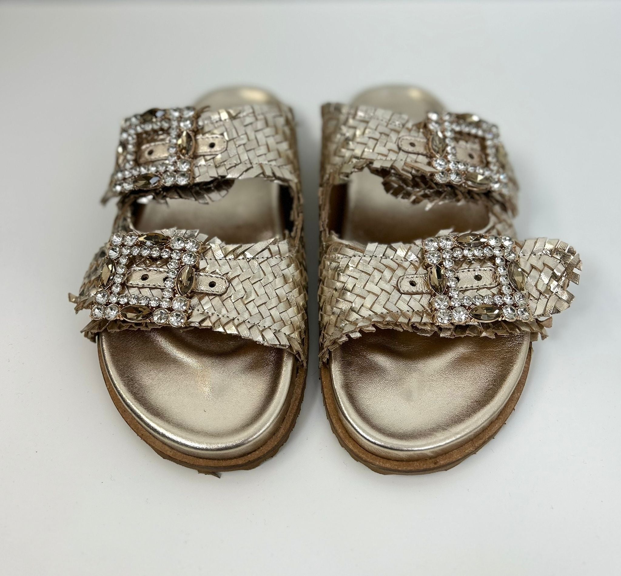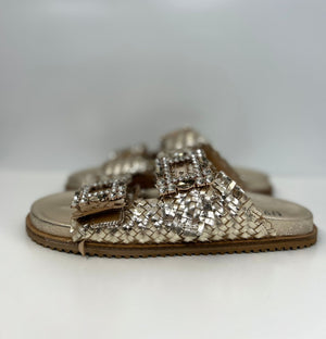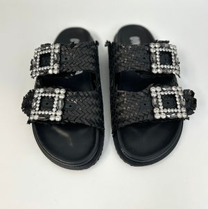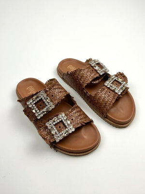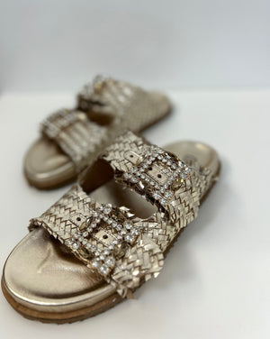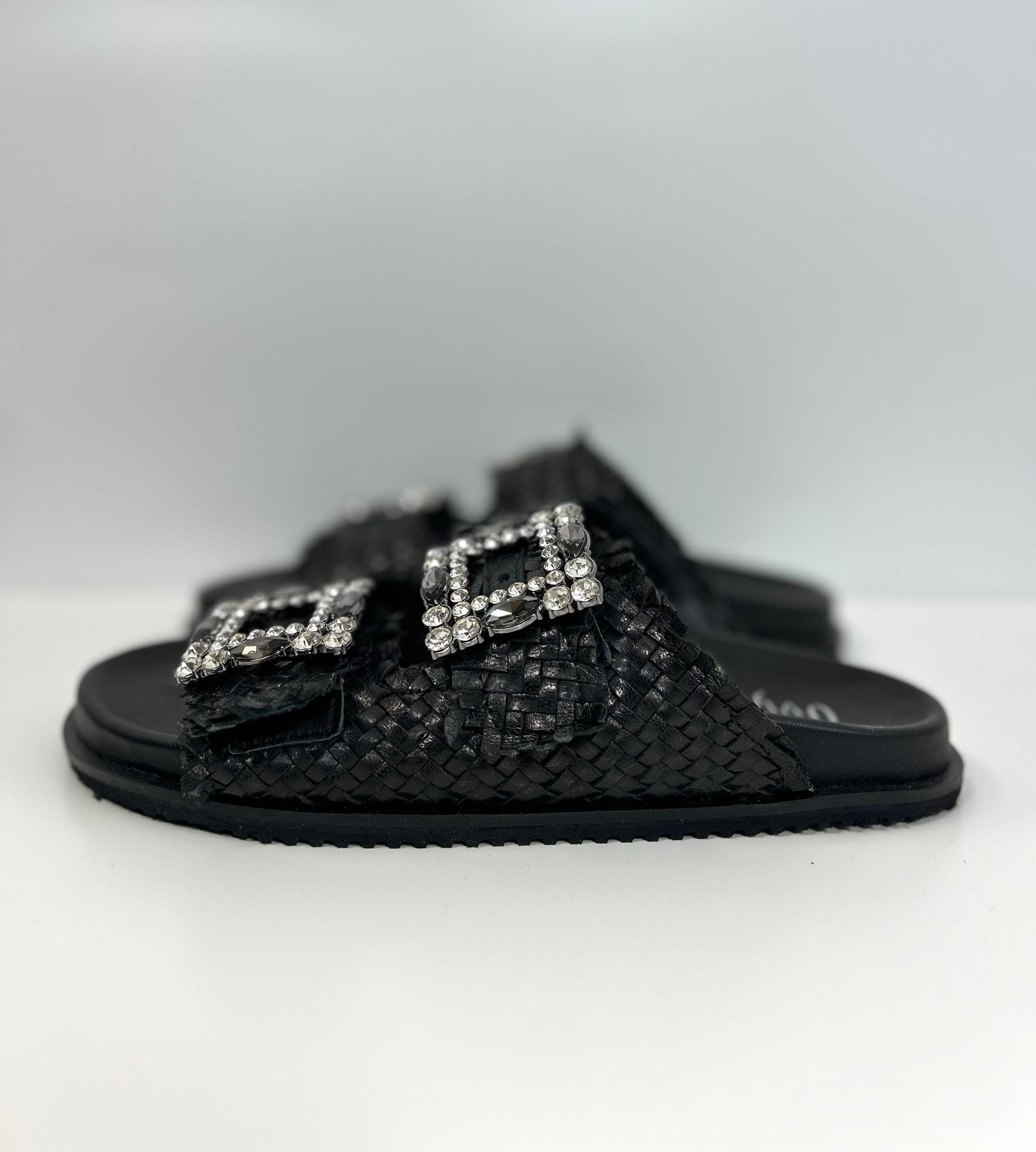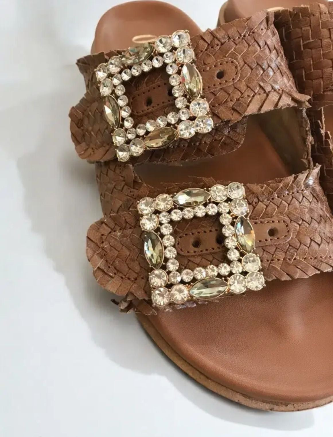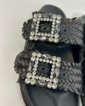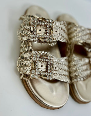 Scarpa flat, in vera pelle cinturino con dettaglio pietre regolabile, marca Ovyè.