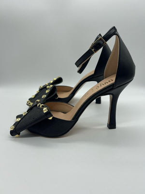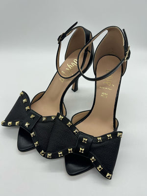Sandalo con borchie altezza tacco 10 cm, cinturino regolabile, tomaia in pelle