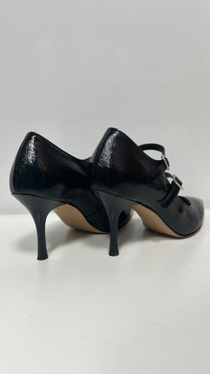 Scarpa OVYE' nera in naplak, con cinturini, tacco 8 cm.