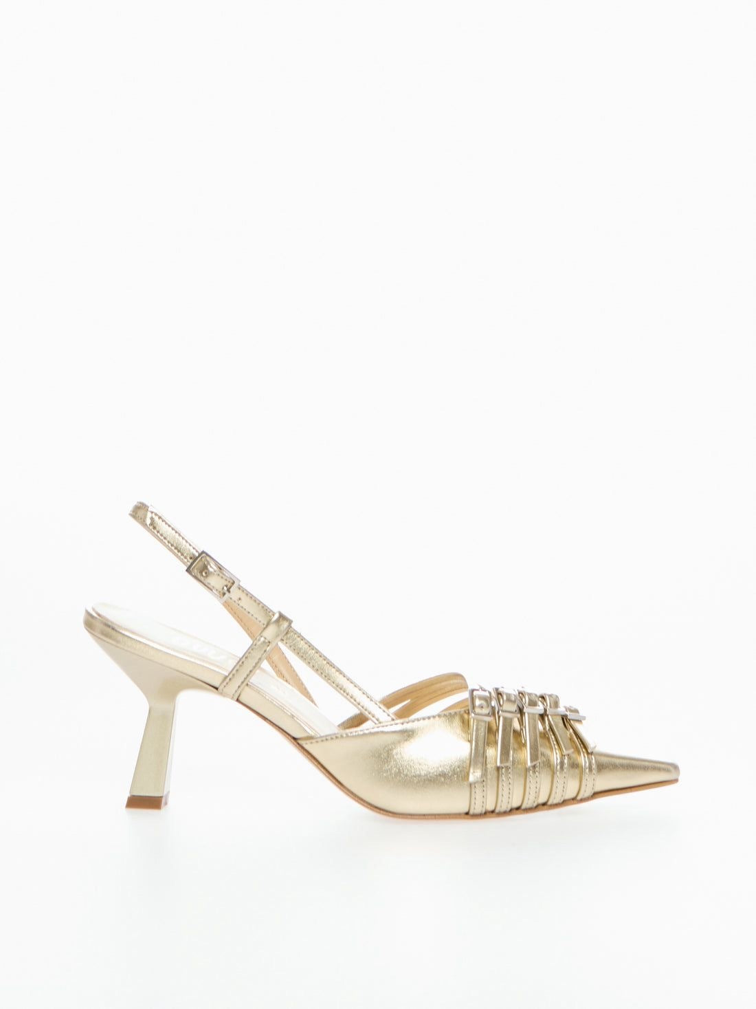Slingback in ecopelle laminata, cinturini, tacco 7 cm