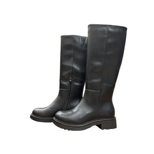 Dal design pulito e moderno, questo stivale modello a tubo si distingue per la sua linea affusolata che valorizza la forma del polpaccio, donando slancio alla figura. La finitura nera lo rende estremamente versatile, perfetto da abbinare sia a look quotidiani che a outfit più eleganti. La cerniera posta sul lato interno assicura una calzata pratica e confortevole. Un modello essenziale e senza tempo, ideale per completare il guardaroba della stagione.