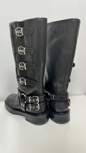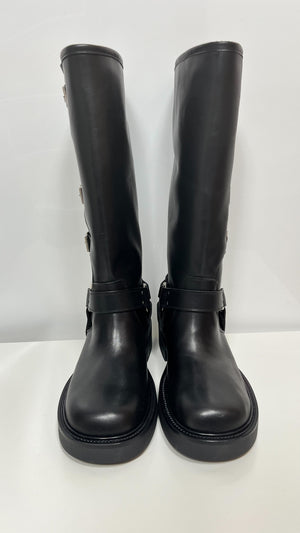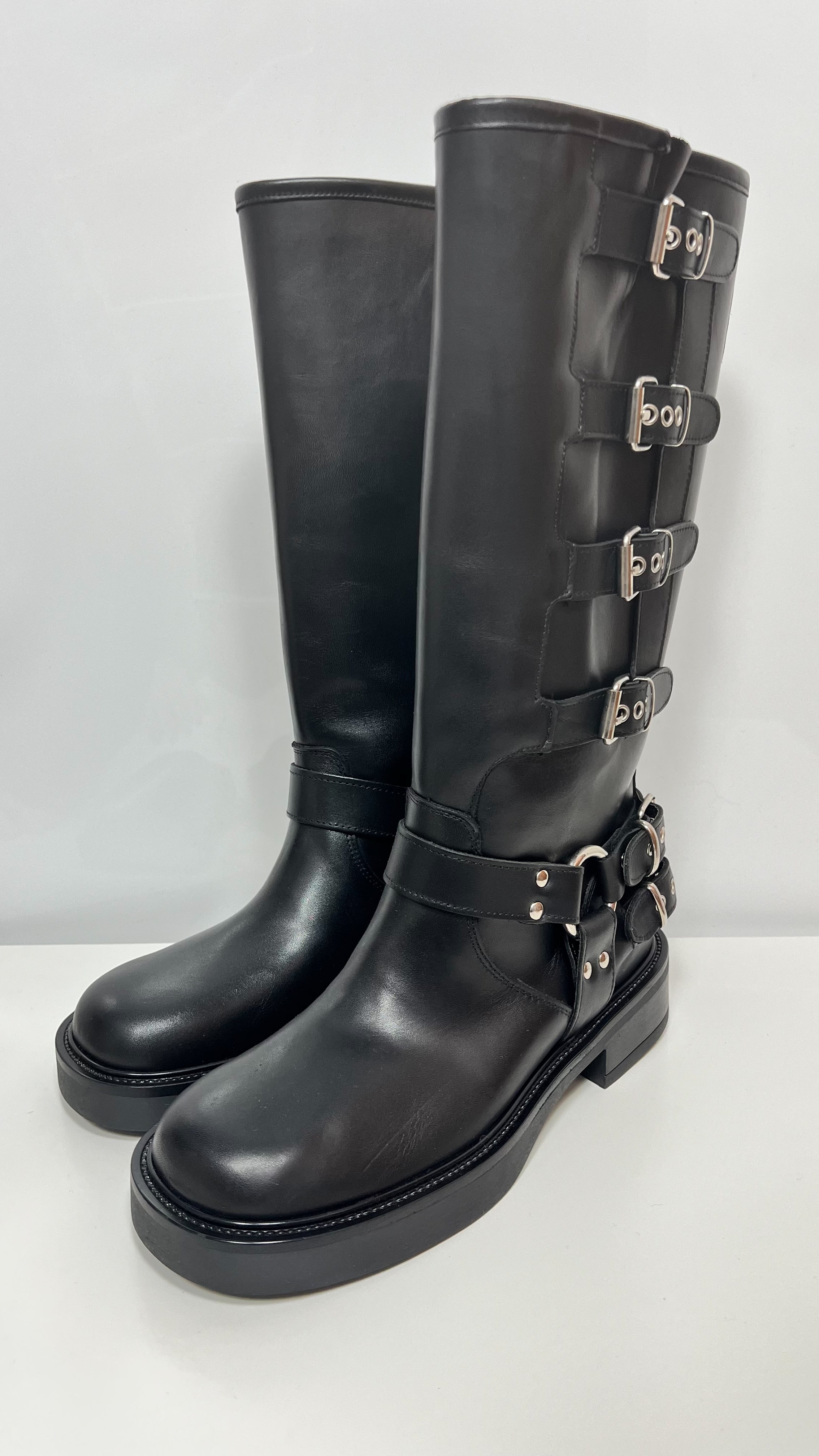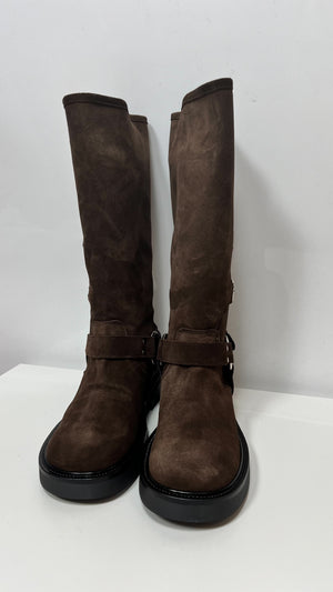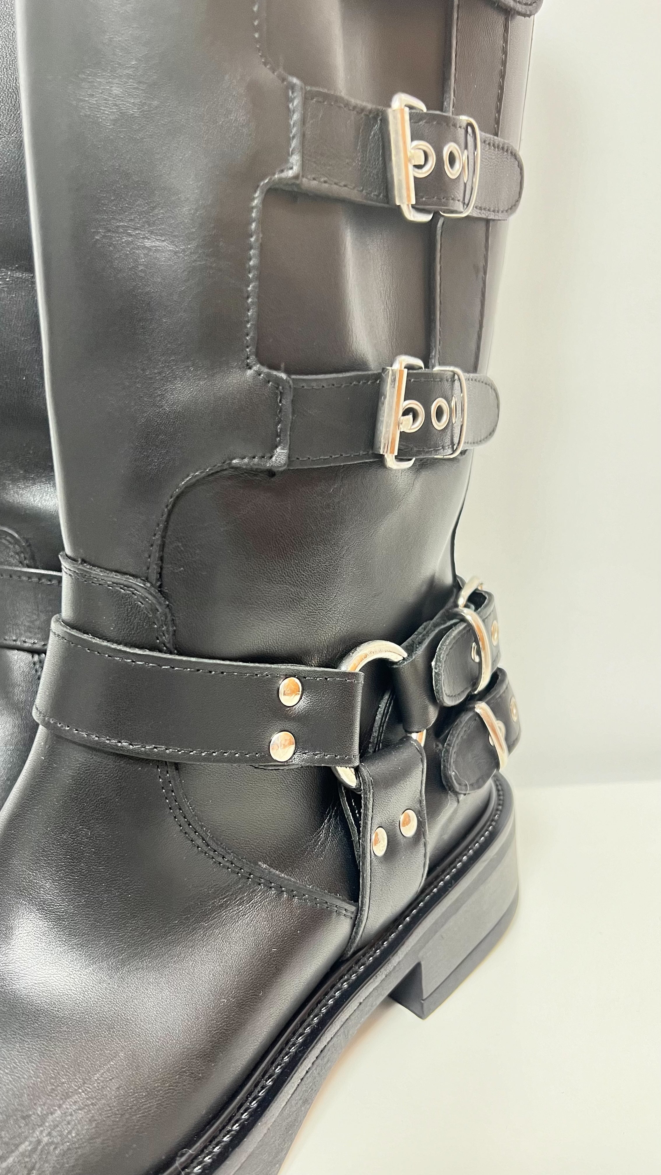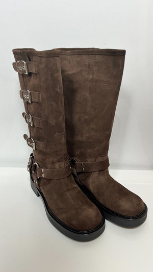 Stivali OVYE' Biker in camoscio con fibbie, tacco 3 cm.