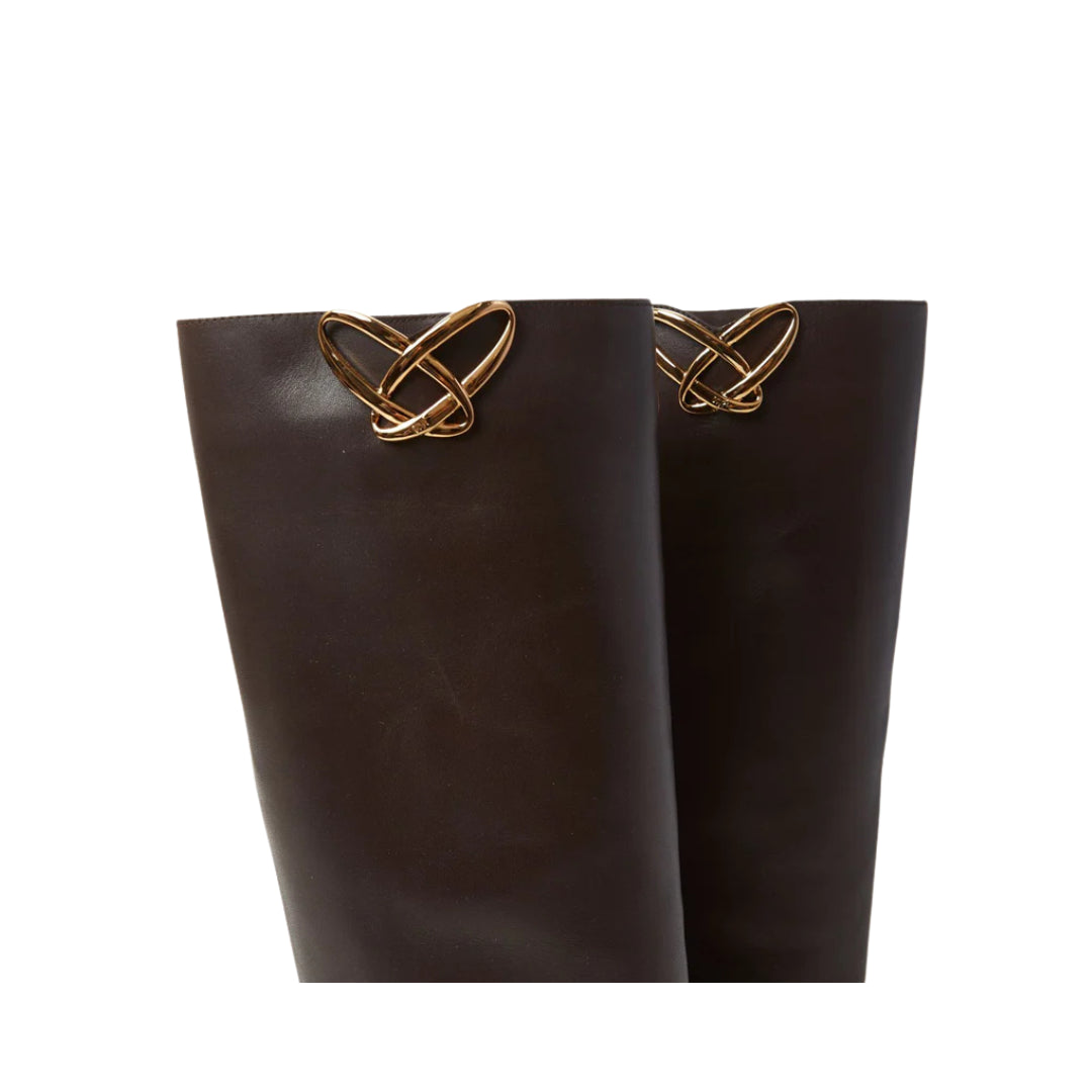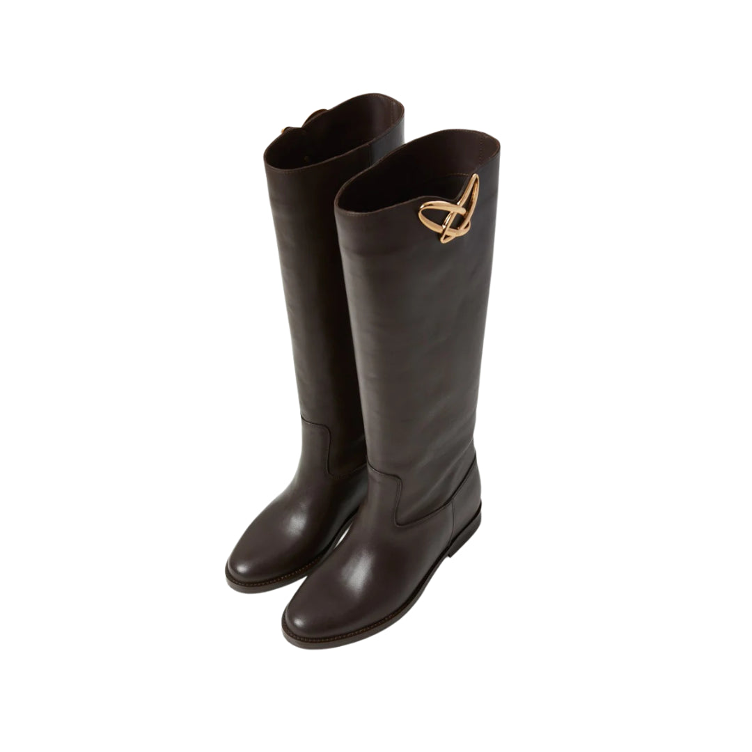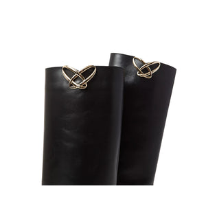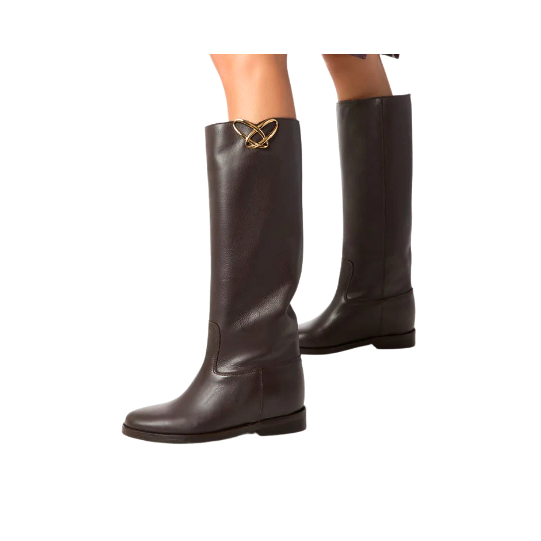 Stivali OVYE' nere in pelle con accessorio oro, zeppa interna 3 cm.