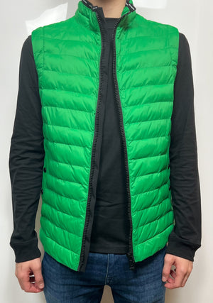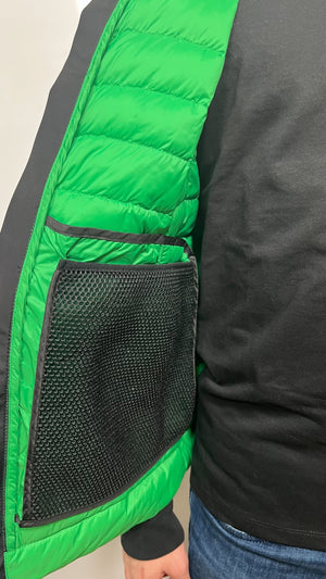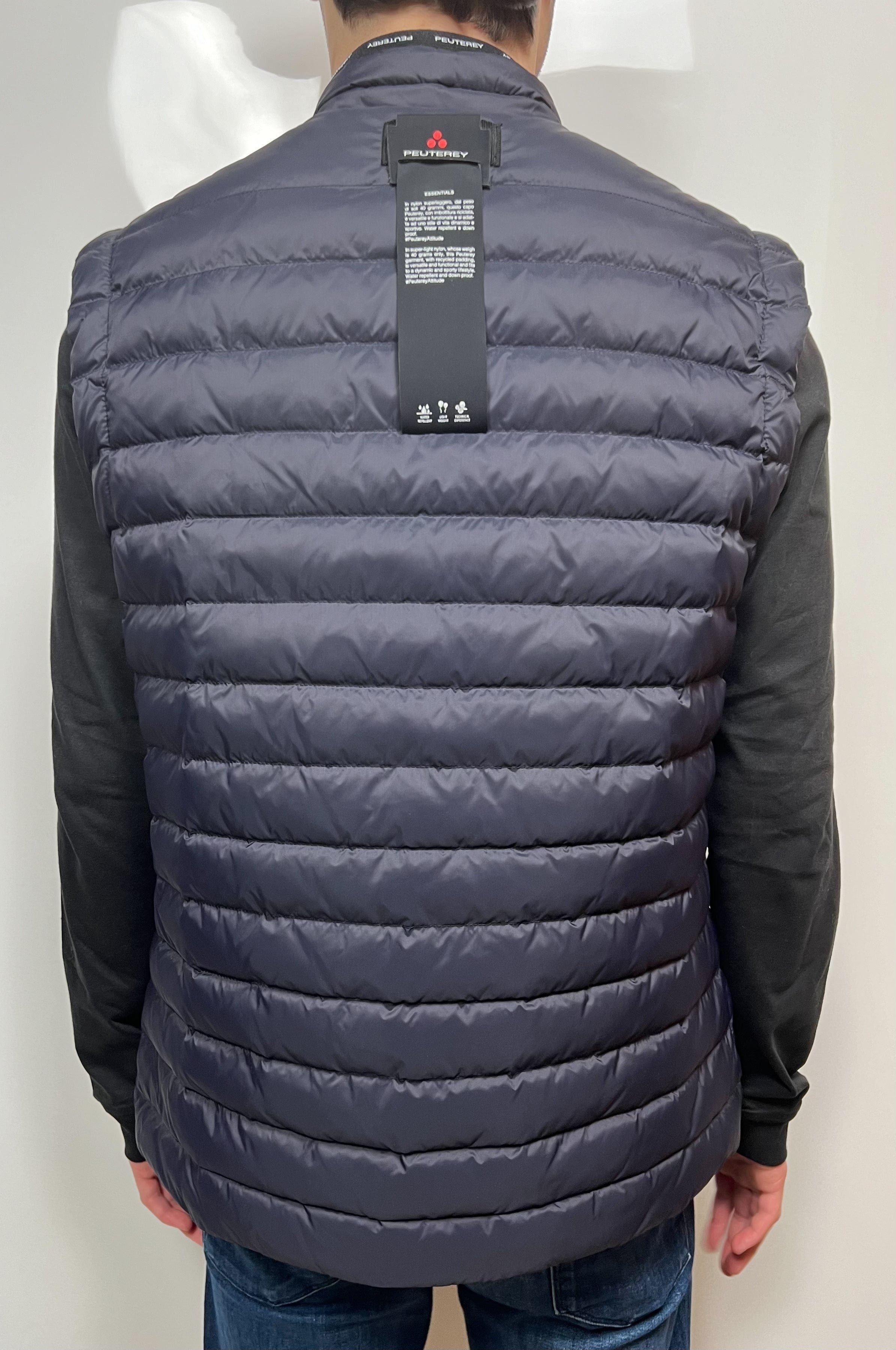 Gilet PEUTEREY blu realizzato in nylon 20den riciclato. L’imbottitura permette di ottenere un volume soffice, caldo e leggero.