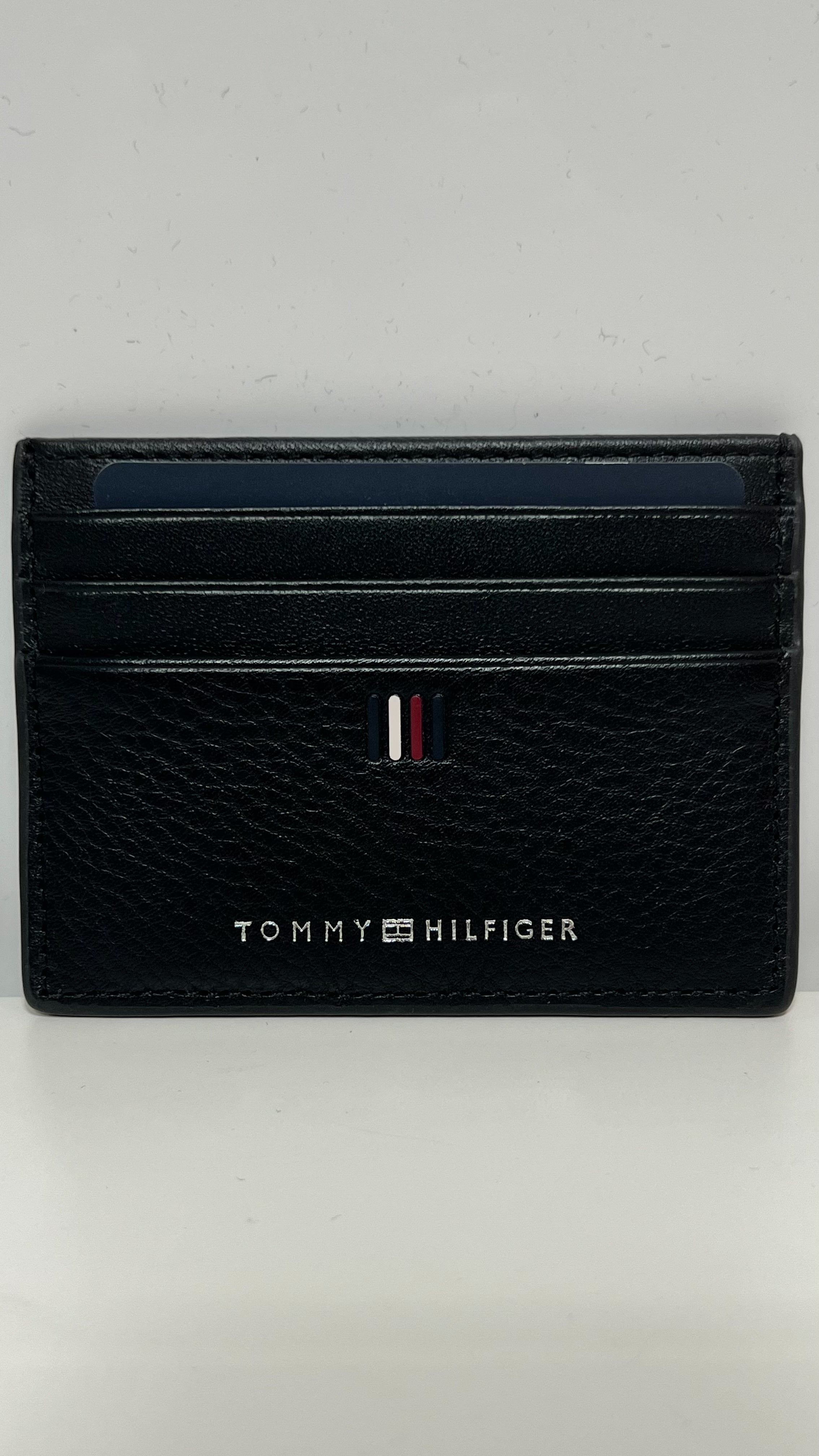 Porta carte TOMMY HILFIGER. Realizzato in pelle nera con numerose fessure esterne per le carte. Logo Tommy Hilfiger frontale.