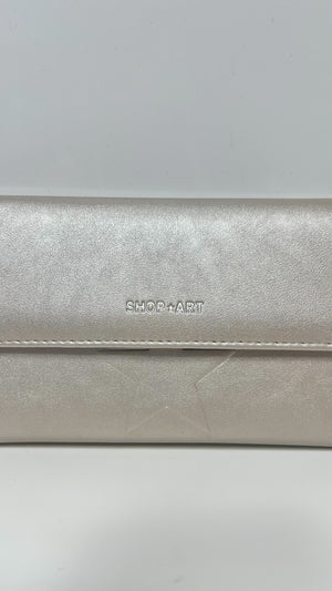 Portafoglio SHOP ART argento in ecopelle logato shop Art e stella stampata.