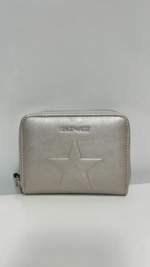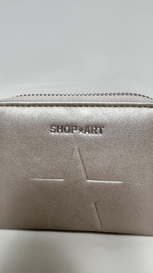 Portafogli SHOP ART piccola dimensione argento con stampa di stella e logo Shop Art.