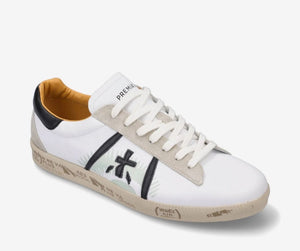 Sneakers ‘Andy’ in morbida pelle bianca. Il look è arricchito dall’inconfondibile istrice e topponcino a contrasto. La suola in gomma, con profilo a cassetta, completa un look grintoso e adattabile a tutti i giorni.