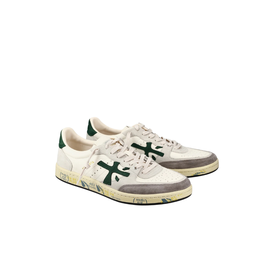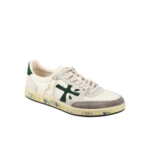 Le BSK CLAY di Premiata sono sneakers che fondono l’estetica retrò del mondo del tennis anni '80 con l’innovazione e la ricercatezza tipiche del brand. Realizzate in un mix di materiali premium come pelle, suede e tessuti tecnici, si distinguono per la loro silhouette sportiva ma sofisticata, adatta tanto alla vita urbana quanto a un look più ricercato. L’intersuola, decorata con le iconiche grafiche “483” e “White Air”, richiama la tradizione Premiata, mentre i dettagli cromatici a contrasto—come i lacci in pelle e gli inserti sul tallone—aggiungono un tocco distintivo. Le perforazioni sulla punta migliorano la traspirabilità, mentre la suola in gomma garantisce comfort e aderenza in ogni situazione. Ideali per chi cerca una sneaker dal design ricercato ma versatile, le BSK CLAY rappresentano l’incontro perfetto tra heritage sportivo e stile contemporaneo.