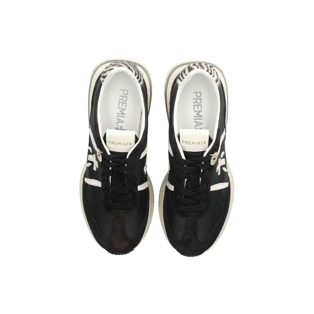 Questi modelli si fanno notare per il tallone animalier: la versione in nero con dettagli zebrati dona grinta e contrasto a ogni outfit, mentre quella in tonalità beige e tortora con inserto tigrato aggiunge un tocco più caldo ma altrettanto audace. Entrambe sono realizzate in un mix di suede e nylon tecnico con finiture premium, pensate per offrire comfort e leggerezza senza rinunciare allo stile.