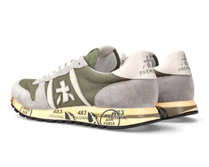 Sneaker uomo di Premiata modello ERIC 6143 in tessuto traforato verde con inserti in suede grigio. Il look è arricchito dall’inconfondibile logo Premiata. Suola ergonomica e super leggera. Le lavorazioni più pregiate, la cura maniacale del dettaglio, lo sviluppo continuo delle forme, la sperimentazione di trattamenti e finiture particolari, la ricerca tecnica, la messa a punto di nuovi pellami, la formazione continua di nuove maestranze: questa è l’essenza stessa di Premiata.