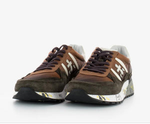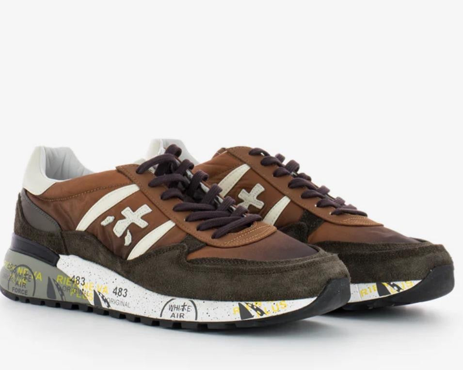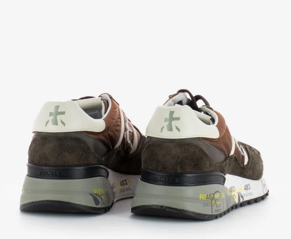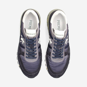 Le sneakers Landeck di Premiata reinterpretano il celebre modello Lander con linee morbide ed eleganti. Realizzate in pelle scamosciata di vitello e nylon tecnico, combinano il logo distintivo del brand con contrasti bianchi raffinati, offrendo uno stile urbano e una suola ergonomica super leggera