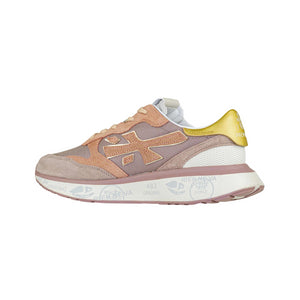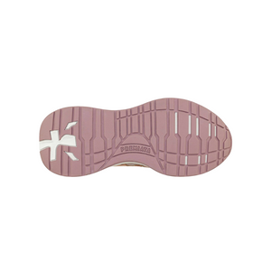 La sneaker Premiata Lauryn incarna l’incontro perfetto tra stile contemporaneo e cura artigianale dei dettagli. La tomaia, realizzata in un'elegante combinazione di camoscio morbido, pelle e tessuto tecnico, si distingue per una raffinata palette cromatica che accosta delicatamente tonalità di rosa cipria, malva e accenti dorati. Un mix armonioso che dona alla scarpa un look femminile, sofisticato e moderno.