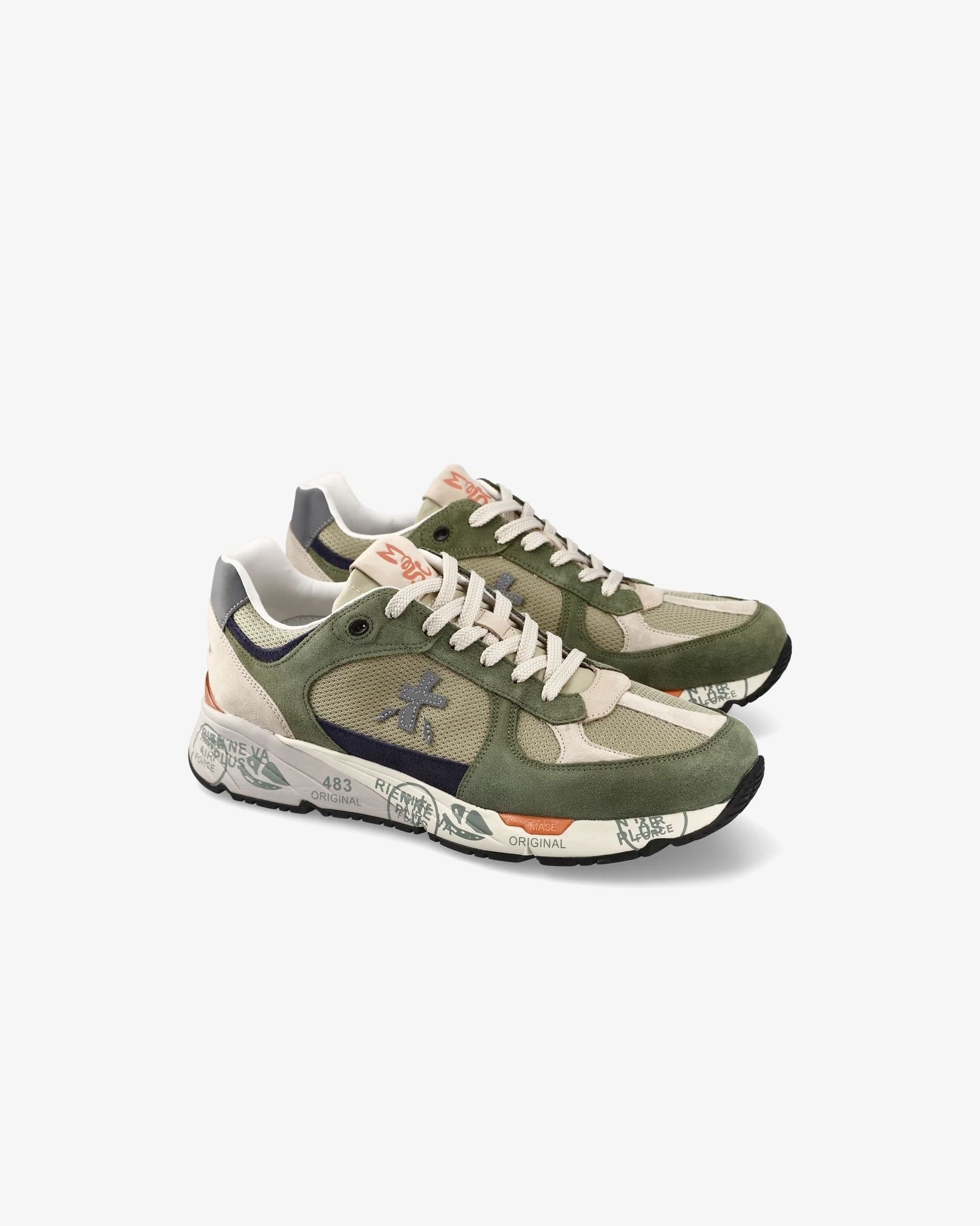La linea MASE di Premiata reinterpreta con stile e spirito vintage il mondo delle sneakers anni ’90. Ogni modello combina pelle di vitello, suede e tessuti tecnici, offrendo un’estetica urban con dettagli a contrasto, logo distintivo e suola alta circa 4 cm per un comfort contemporaneo