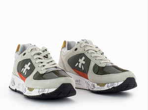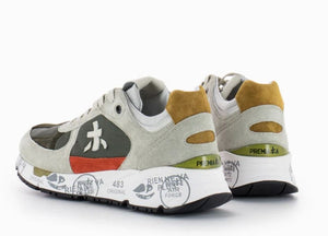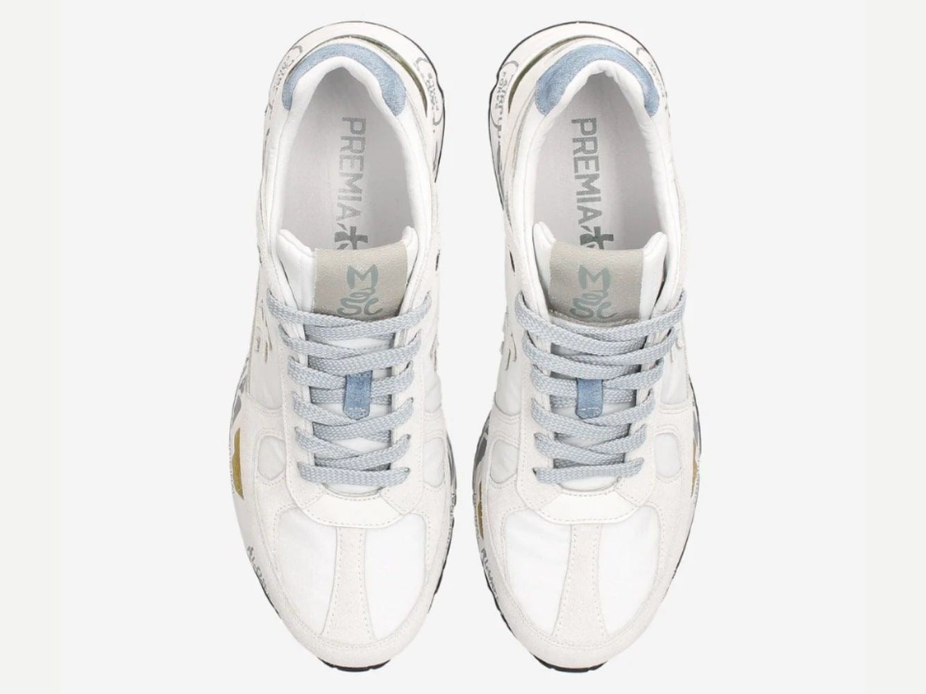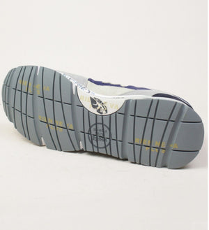Tomaia in pelle scamosciata grigia e tessuto blu