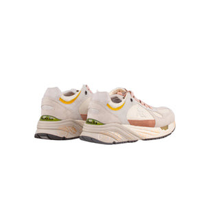 La Premiata MASED 7824 è una sneaker che nasce dall’incontro tra design ricercato e autentica lavorazione artigianale italiana. La tomaia, la fodera e la soletta sono interamente realizzate in pelle di alta qualità, valorizzate da un elegante mix di tonalità neutre illuminate da delicati dettagli pastello. Le cuciture a contrasto aggiungono dinamismo alla silhouette, mentre il logo “MSC” ricamato sulla linguetta firma il modello con un tocco distintivo e discreto.