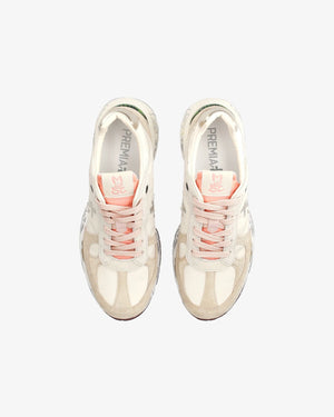 Sneakers Mase risentono del mood nineties, combinano una silhouette vintage con materiali pregiati e dettagli vivaci. Fedeli al design Premiata, ne conservano tutti gli elementi chiave: il logo che decora i laterali, la scritta MASE che si evince sull’etichetta, trattamenti e dettagli a contrasto che ne risaltano la visibilità.