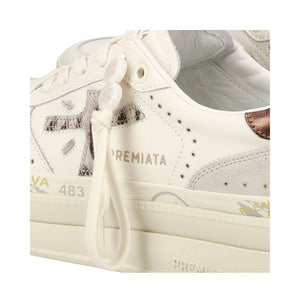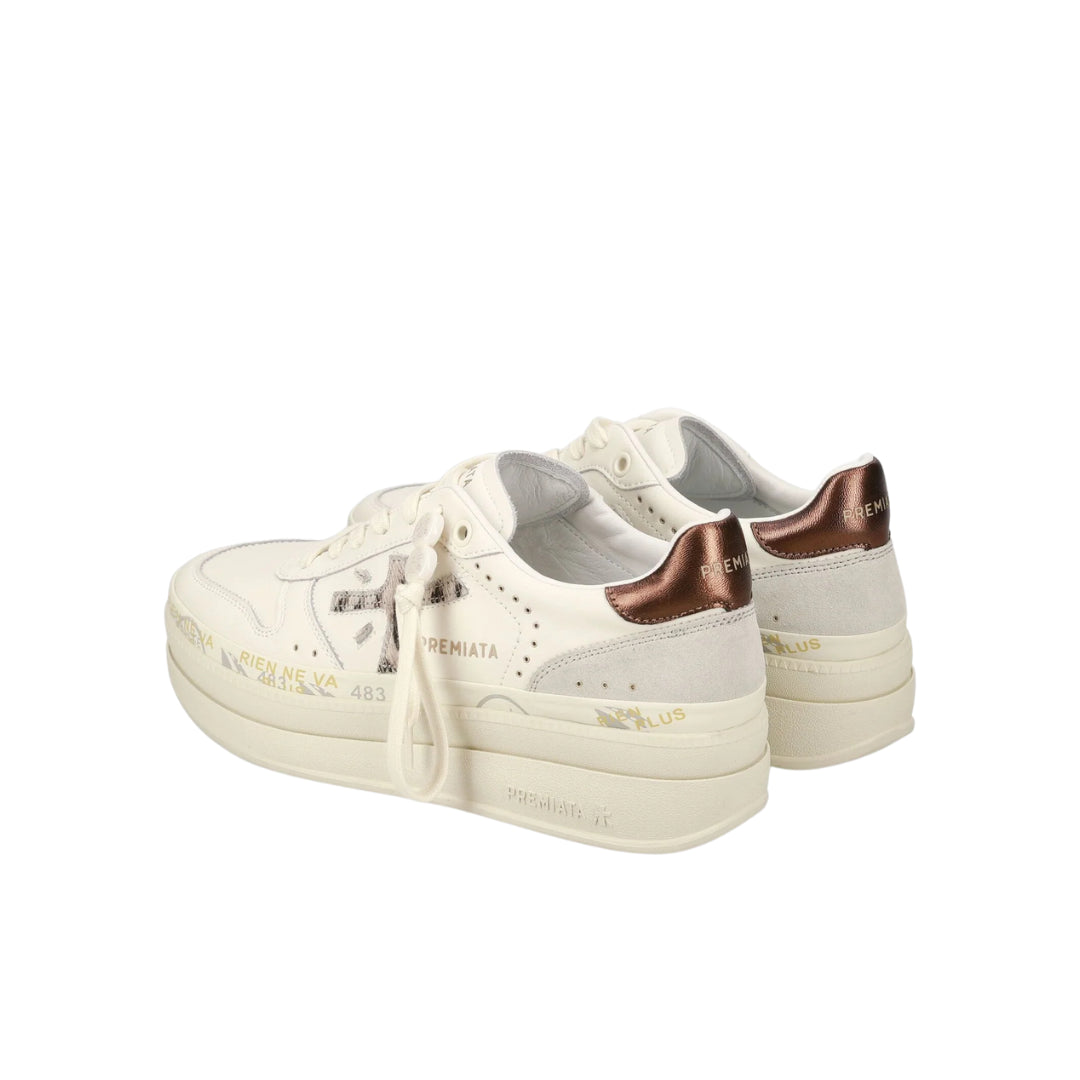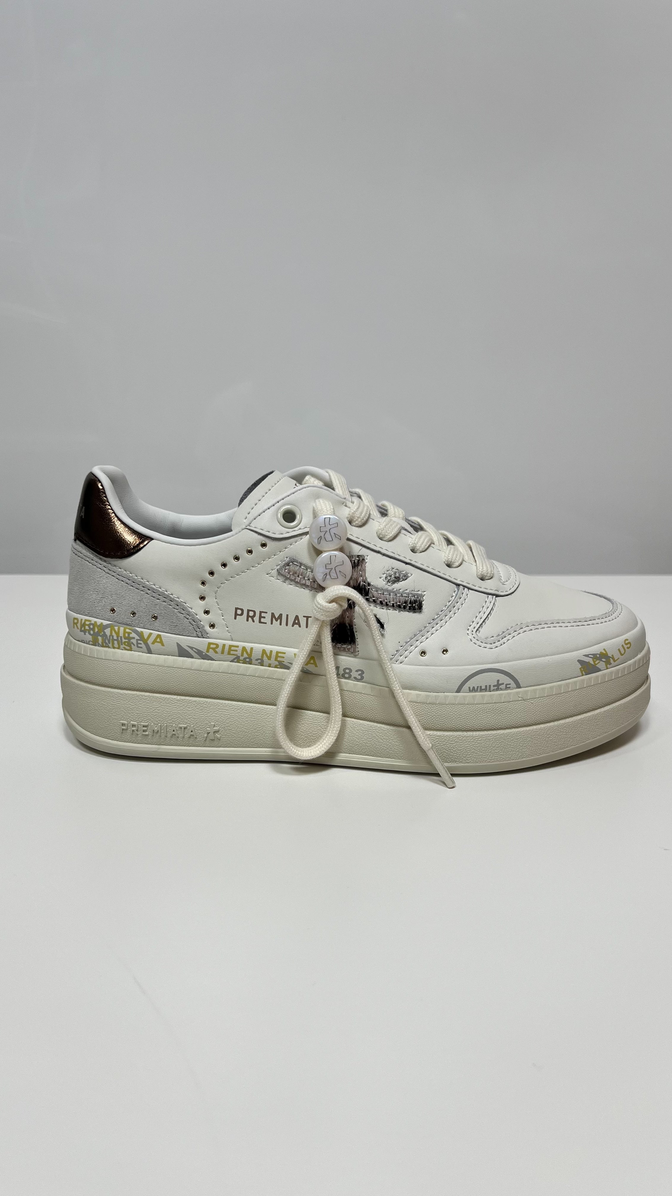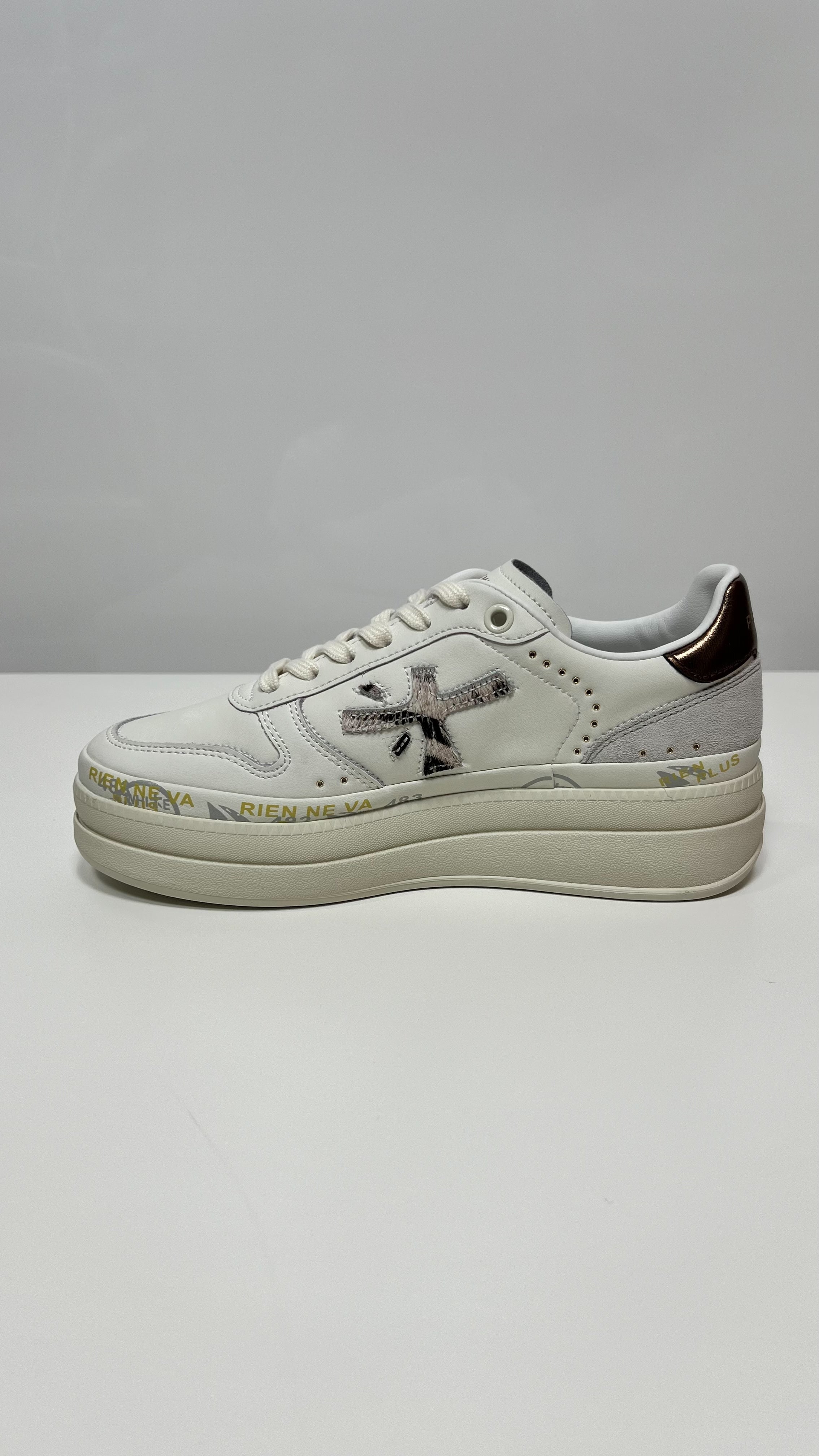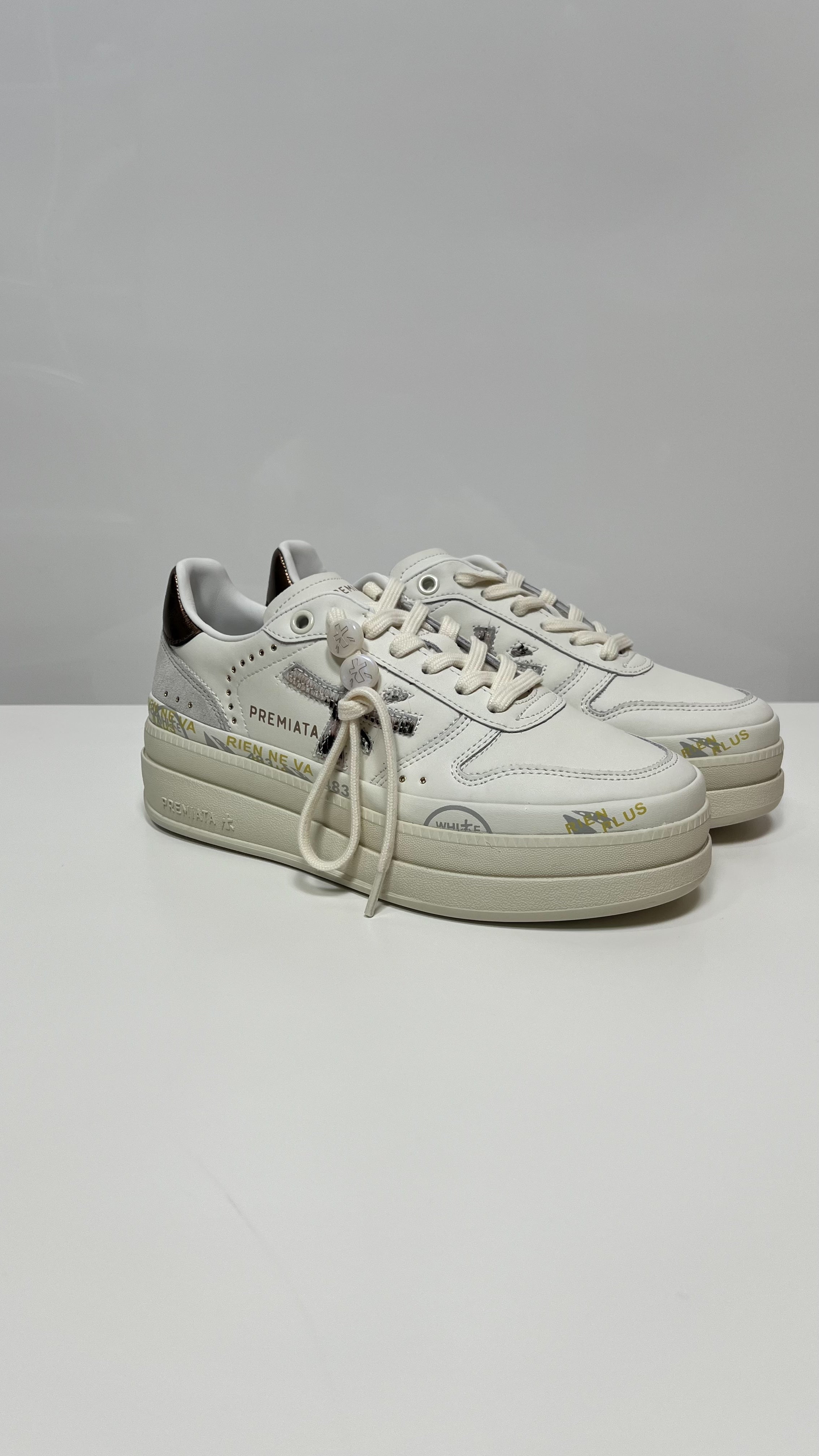 Le sneakers MICOL di Premiata uniscono spirito urbano e comfort quotidiano in un design unico e riconoscibile. Caratterizzate da una suola platform leggera e dalla tipica decorazione grafica “483”, presentano una tomaia in pelle o suede di alta qualità, arricchita da dettagli distintivi come lacci personalizzati, inserti metallici o finiture shearling
