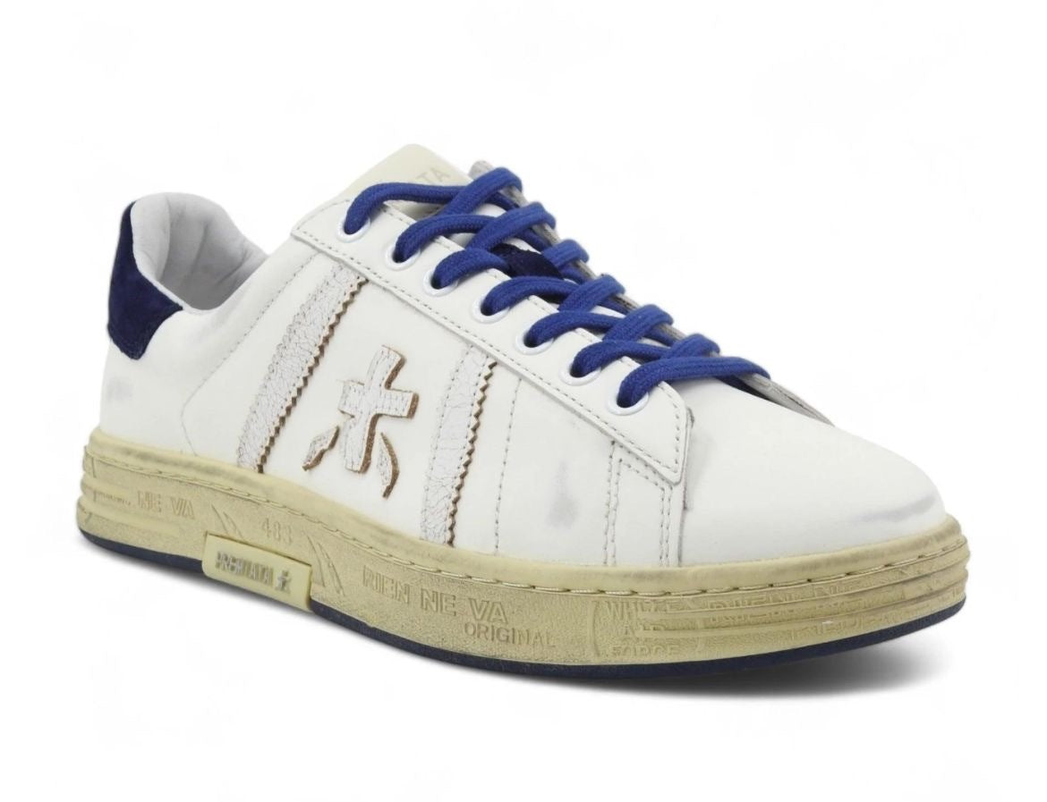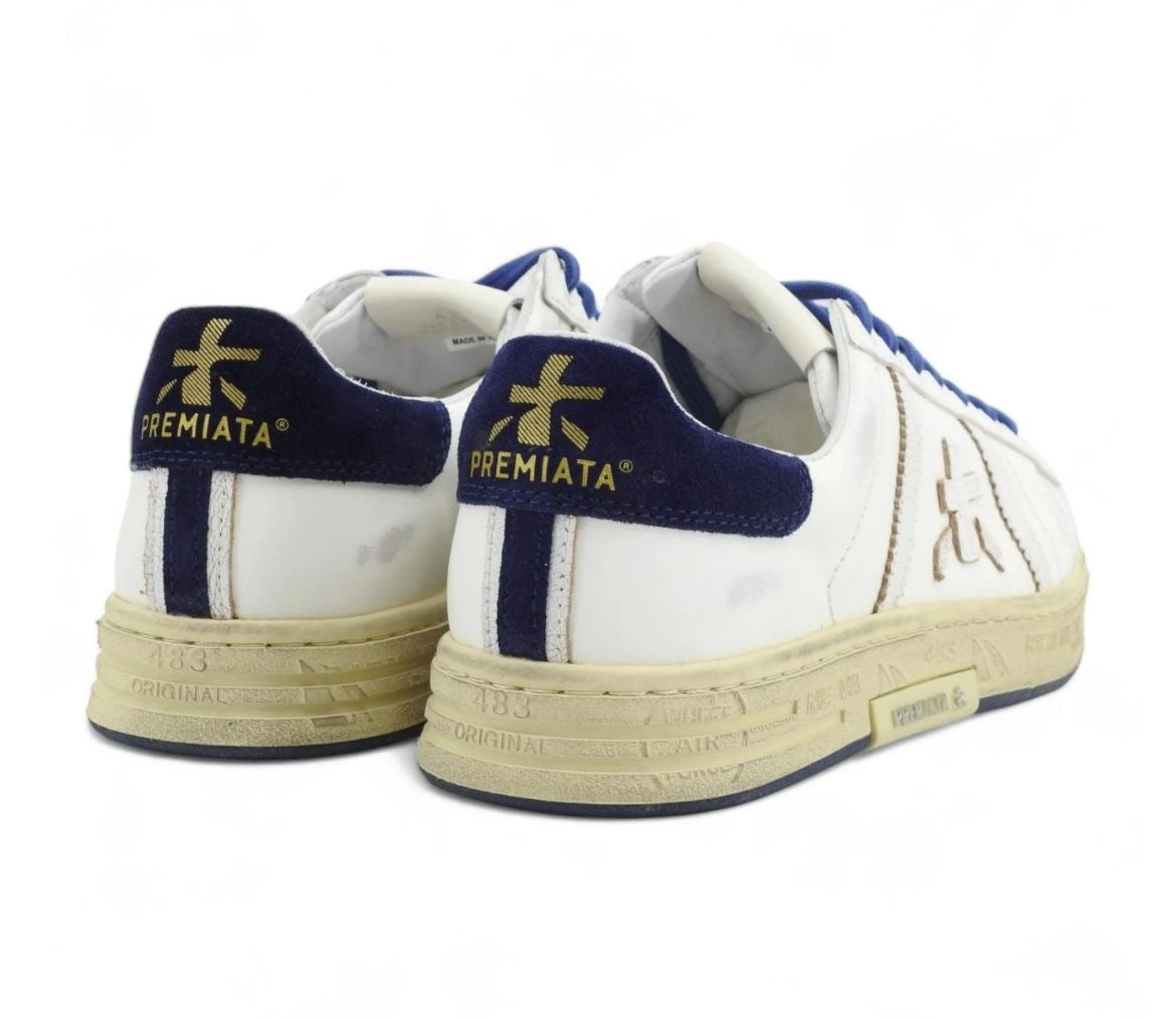 La suola dal look raffinato e discreto con dettaglio centrale PREMIATA e timbri a rilievo.