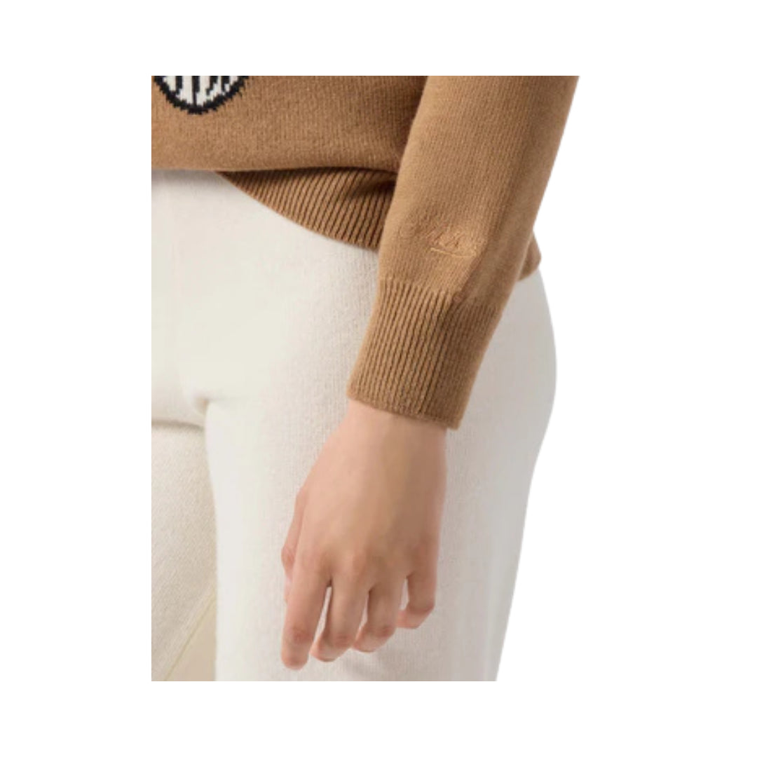 Questo maglione in misto cashmere color cammello combina comfort, qualità e un tocco di ironia grazie alla speciale collaborazione PEANUTS. Realizzato a finezza 7gg in maglia rasata, presenta un design girocollo con maniche lunghe e bordi a coste su fondo, collo e polsi, per una finitura classica e ben strutturata.