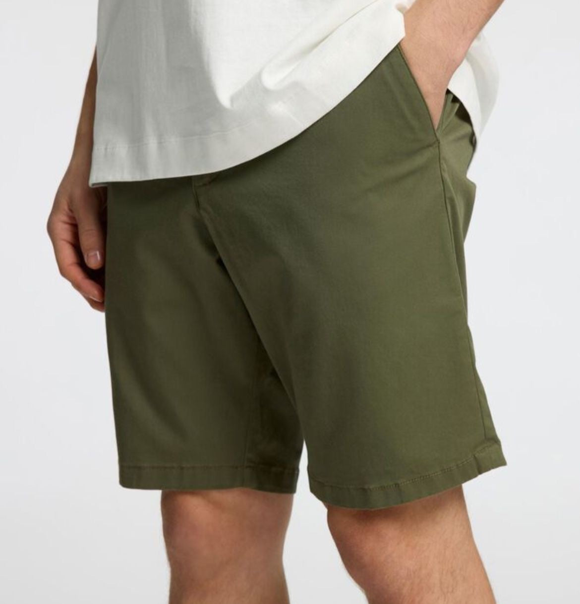 Non possono mancare nel tuo guardaroba estivo questi shorts in twill di cotone elasticizzato, con taglio classico.
