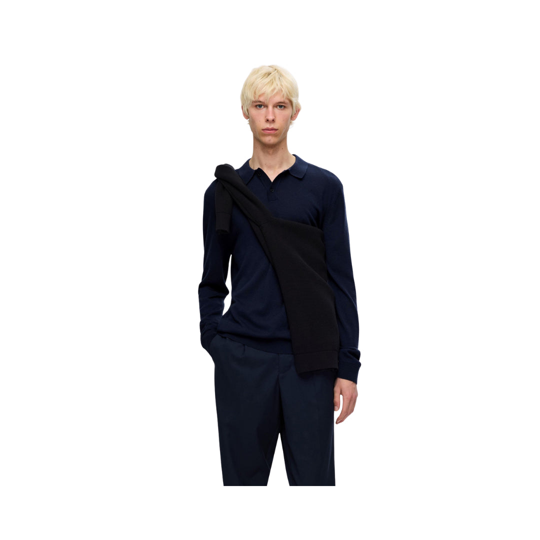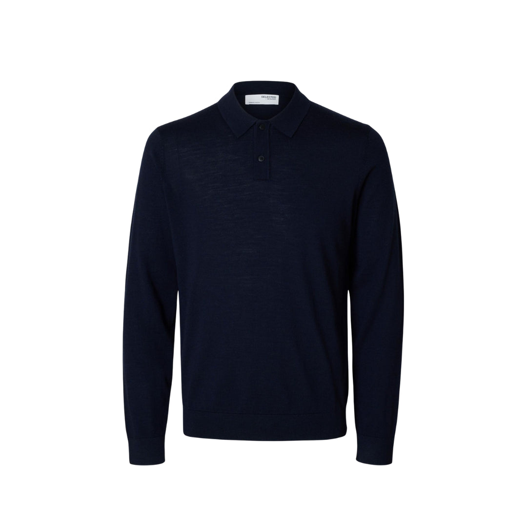 Polo Selected da uomo a maniche lunghe in 100% lana merino, con vestibilità Regular Fit. Morbida, traspirante e confortevole, ideale per un look raffinato e versatile in ogni stagione.