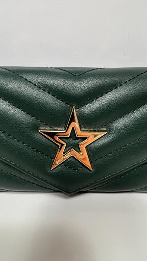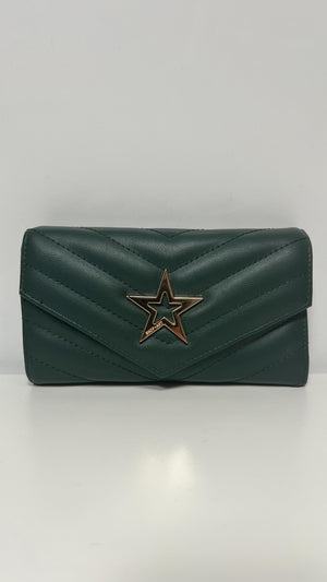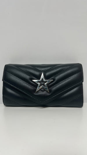 Portafogli SHOP ART cuoio in ecopelle trapuntata con dettaglio di stella in argento.