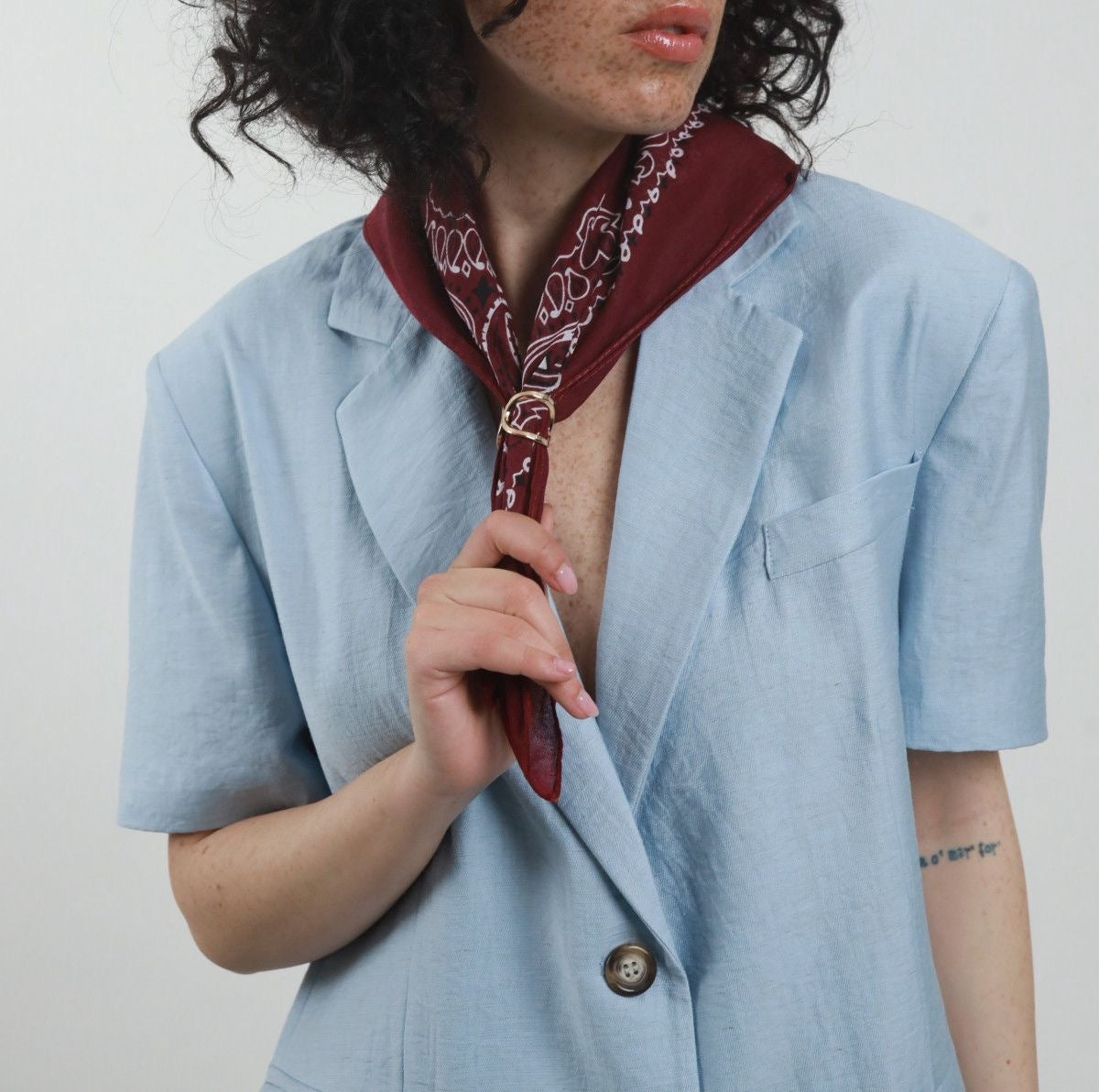 Blazer Mezze Maniche con Spalline e Tasche a Pattina + Bandana.