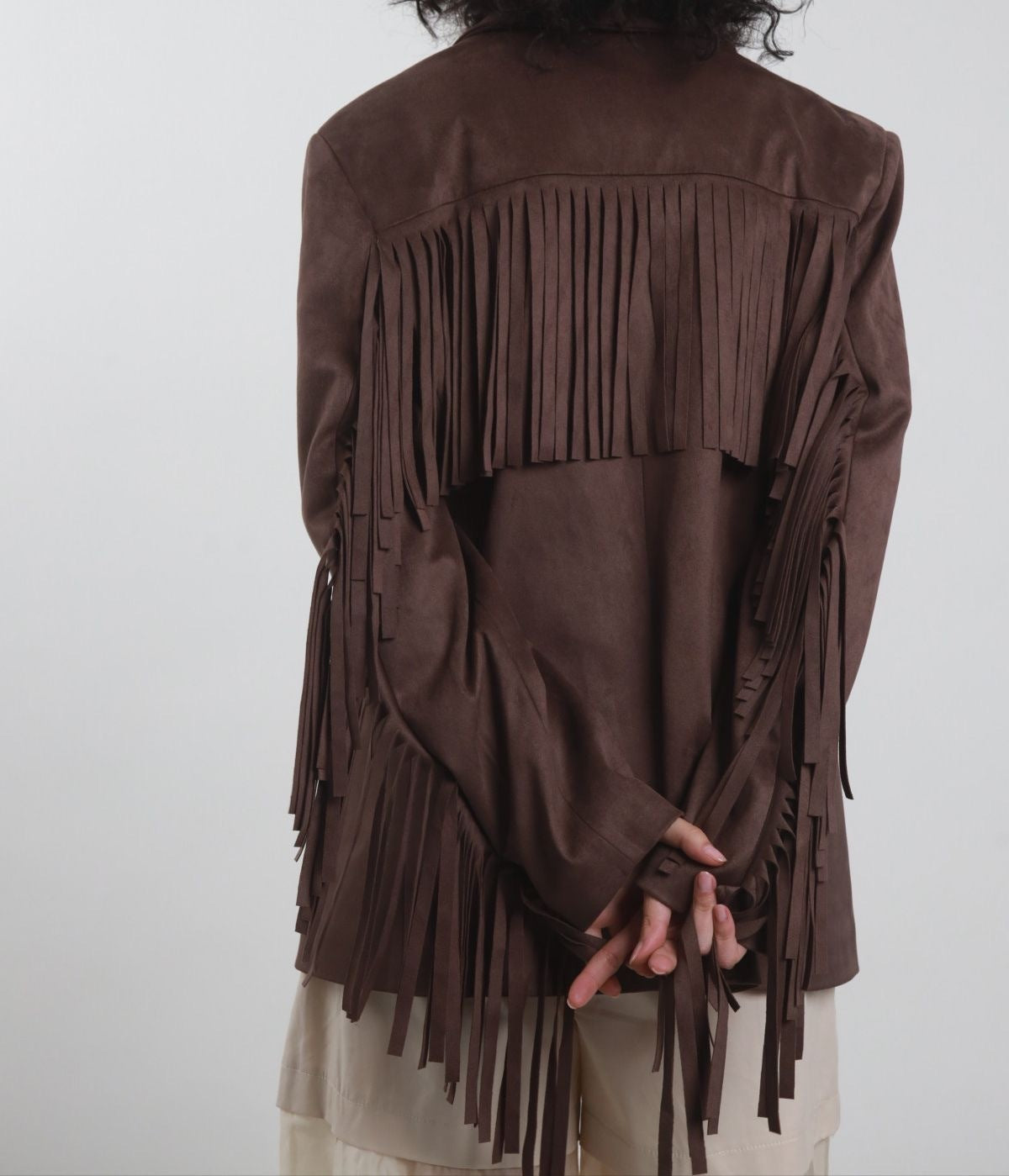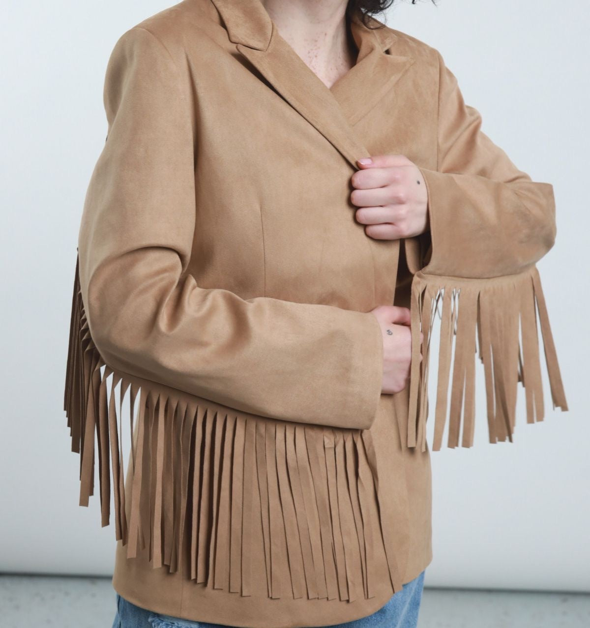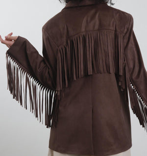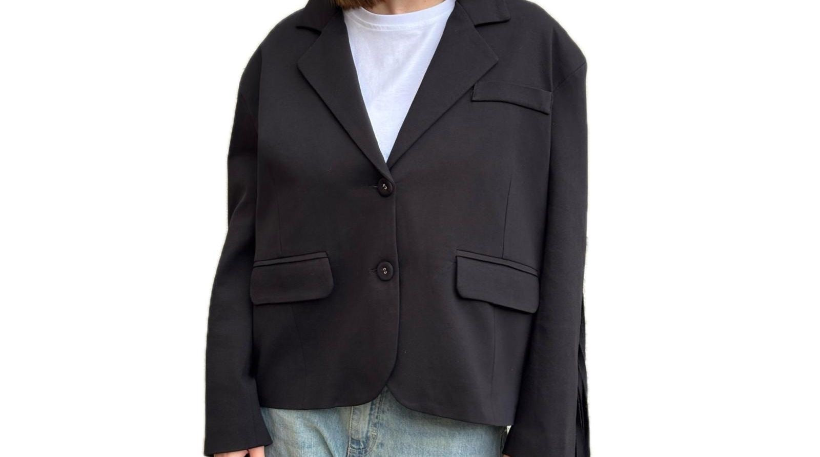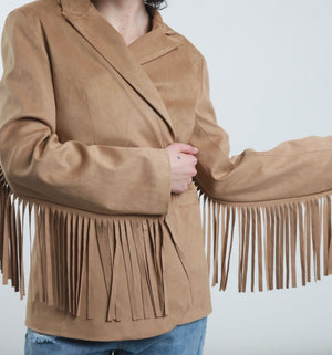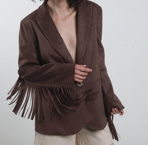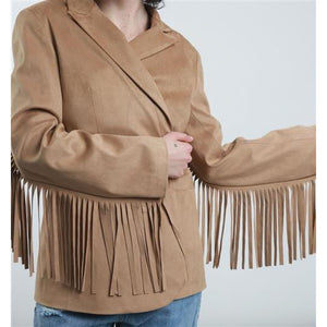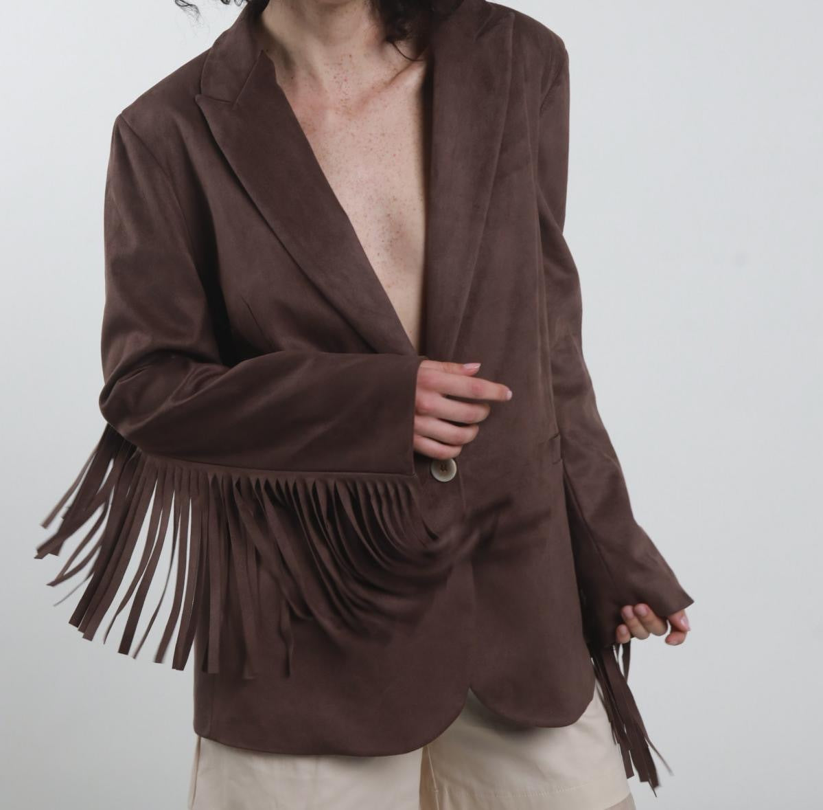 Giacca Ecodainetto Chiusura Monobottone con Frange sul Retro e sulle Maniche.