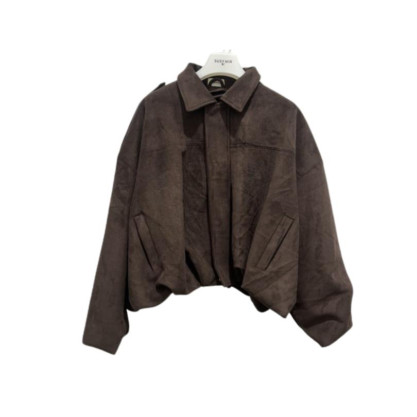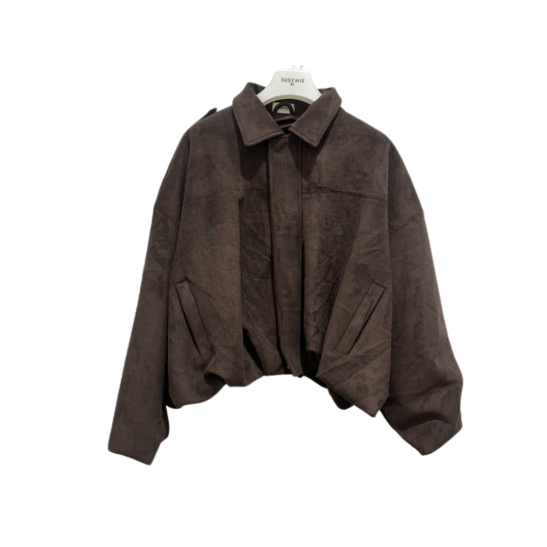 Giacca over in Ecodatinetto con pipistrelli, collo e chiusura con zip. Tasche laterali a portafoglio