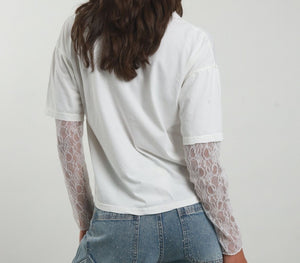 Polo con maniche in pizzo, colletto con chiusura a bottoni