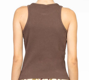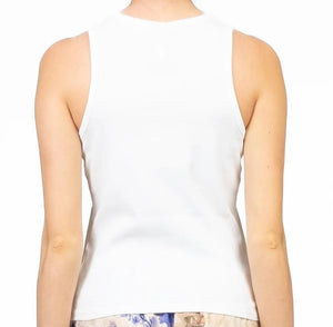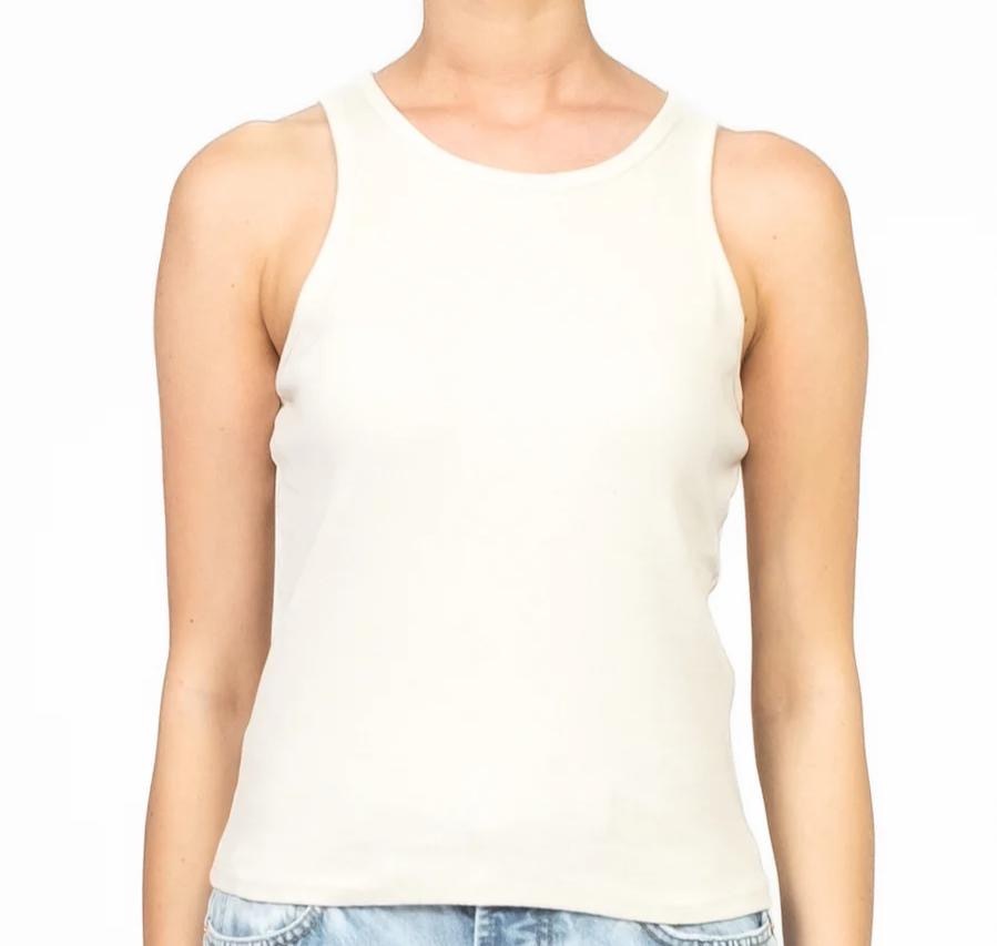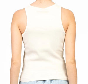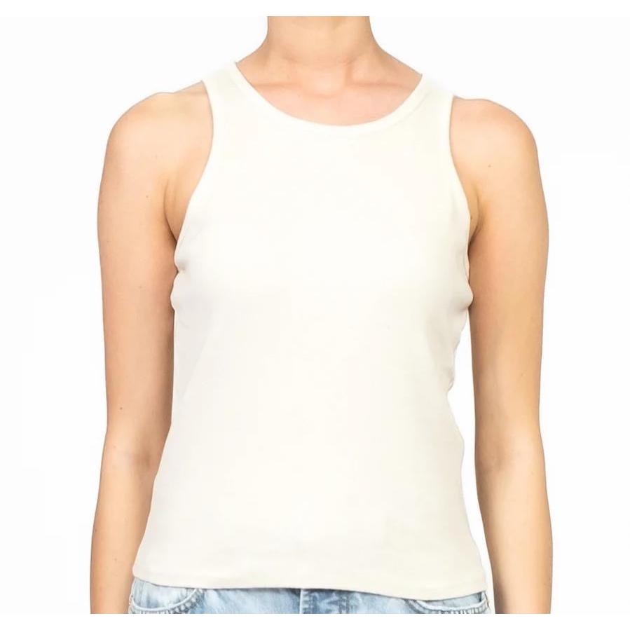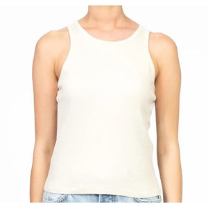 Questa canotta a costine si caratterizza per la texture a righe sottili che aggiunge un tocco di dettaglio al capo. Realizzata in tessuto morbido e confortevole