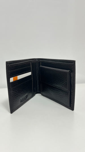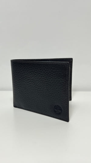 Portafoglio TIMBERLAND in pelle martellata nera con logo sul davanti.