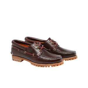Scarpa da barca 3 eye lug da donna cucita a mano. Con una tomaia in pelle premium leather di Timberland. Presenta un pratico sistema di allacciatura a 360° con lacci in cuoio