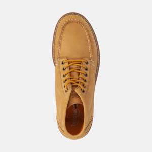 Scarponcini uomo in pelle nabuk Better Leather color miele, con costruzione morbida e design con cuciture a vista sulla punta, suola in gomma zigrinata, etichetta logo in tessuto e logo albero Timberland in tonalità sul lato.