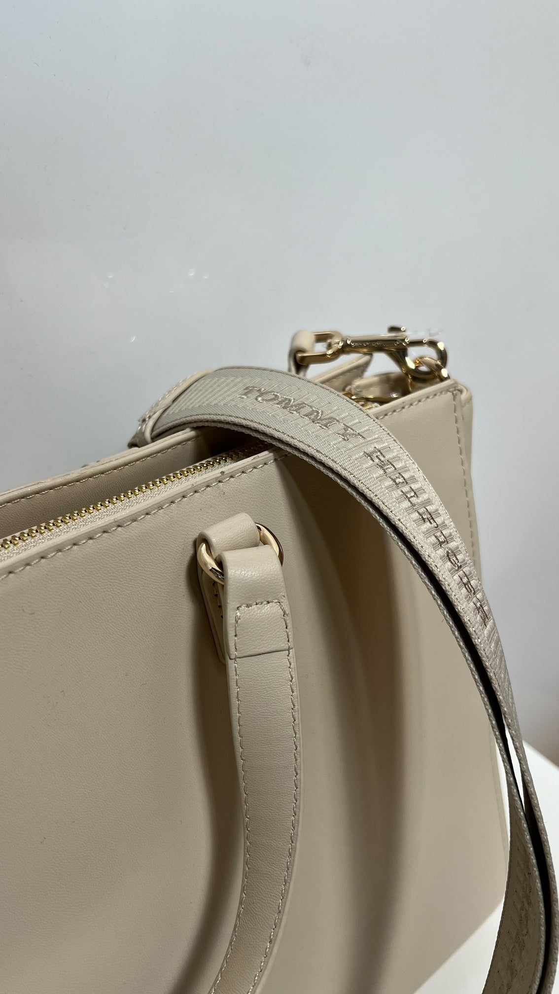 Borsa TOMMY HILFIGER panna dotata di una tracolla rimovibile in tessuto impreziosita dal logo ripetuto.
