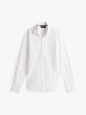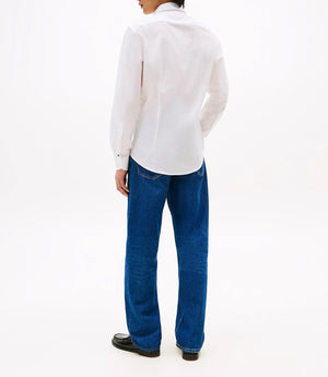 Misto cotone e lino, colletto alla francese, polsini arrotondati con due bottoni, branding Tommy Hilfiger, bandierina Tommy Hilfiger ricamata sul polsino