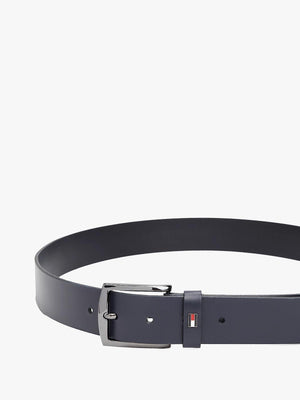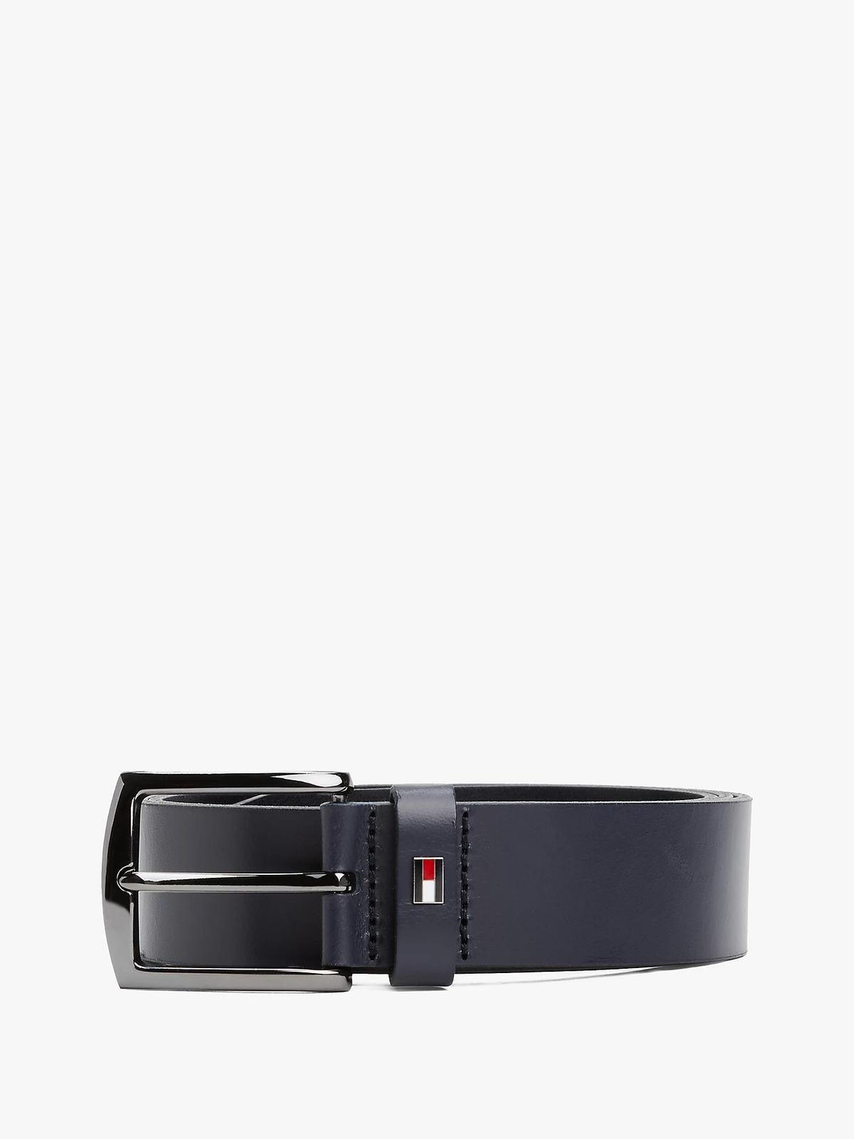 Cinta in Pelle, finitura liscia, fibbia quadrata in metallo, branding Tommy Hilfiger, bandierina Tommy Hilfiger smaltata sul passante