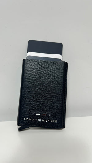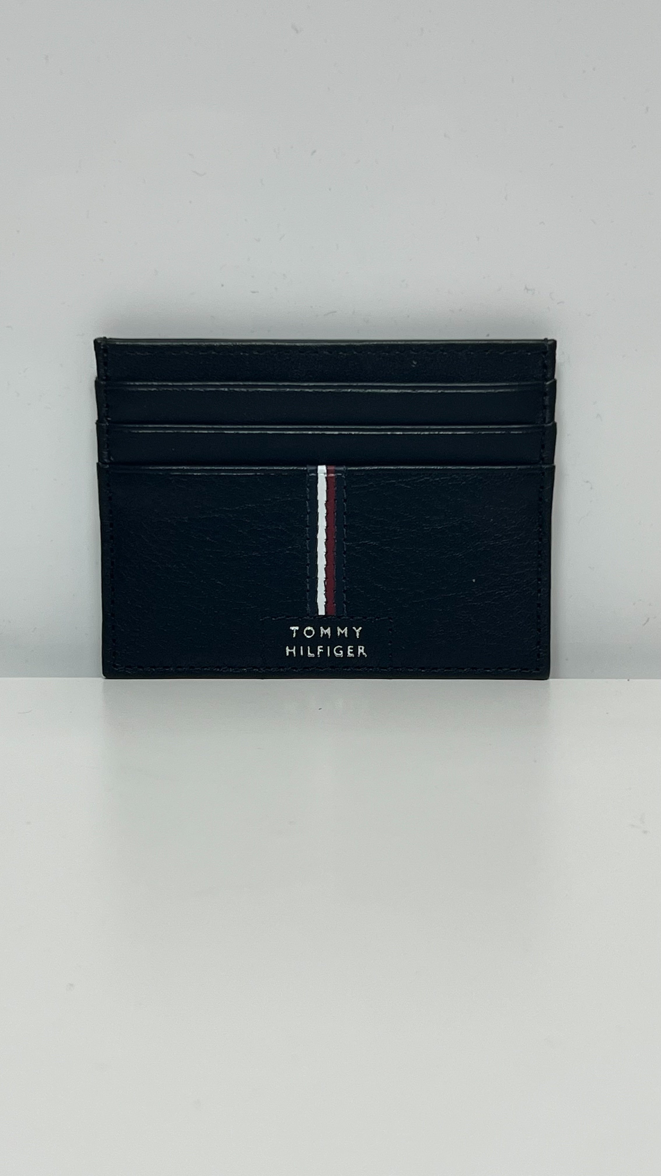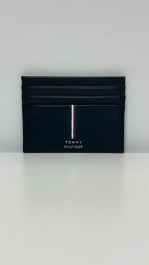 Porta carte di credito compatto, realizzato in pregiata pelle con finitura zigrinata piatta per un tocco lussuoso. Numerose fessure interne per carte di credito. Logo Tommy Hilfiger sul davanti.