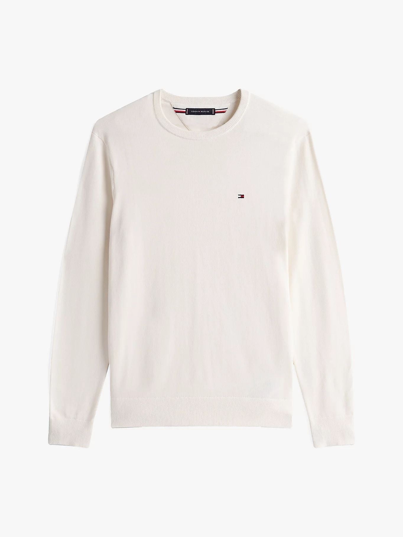 Realizzata in puro cotone pettinato, questa maglia offre una sensazione di morbidezza superiore e una qualità impeccabile. Il design essenziale è valorizzato dal girocollo e dalle finiture a coste su collo, polsini e fondo, che assicurano una vestibilità stabile e curata. L'inconfondibile nastro iconico all'interno del collo e la bandierina Tommy Hilfiger ricamata sul petto aggiungono un tocco distintivo, testimonianza dell'attenzione ai dettagli del brand.