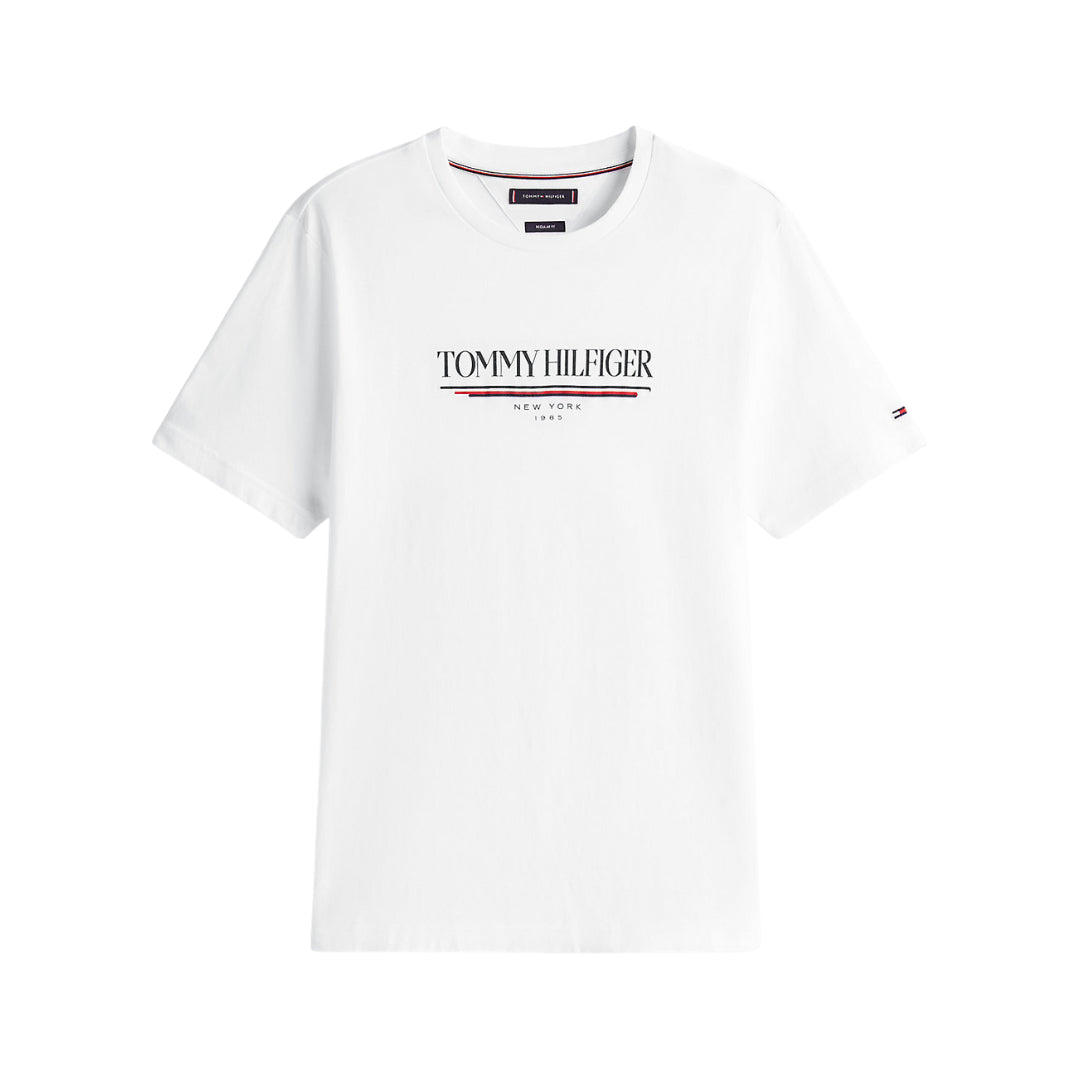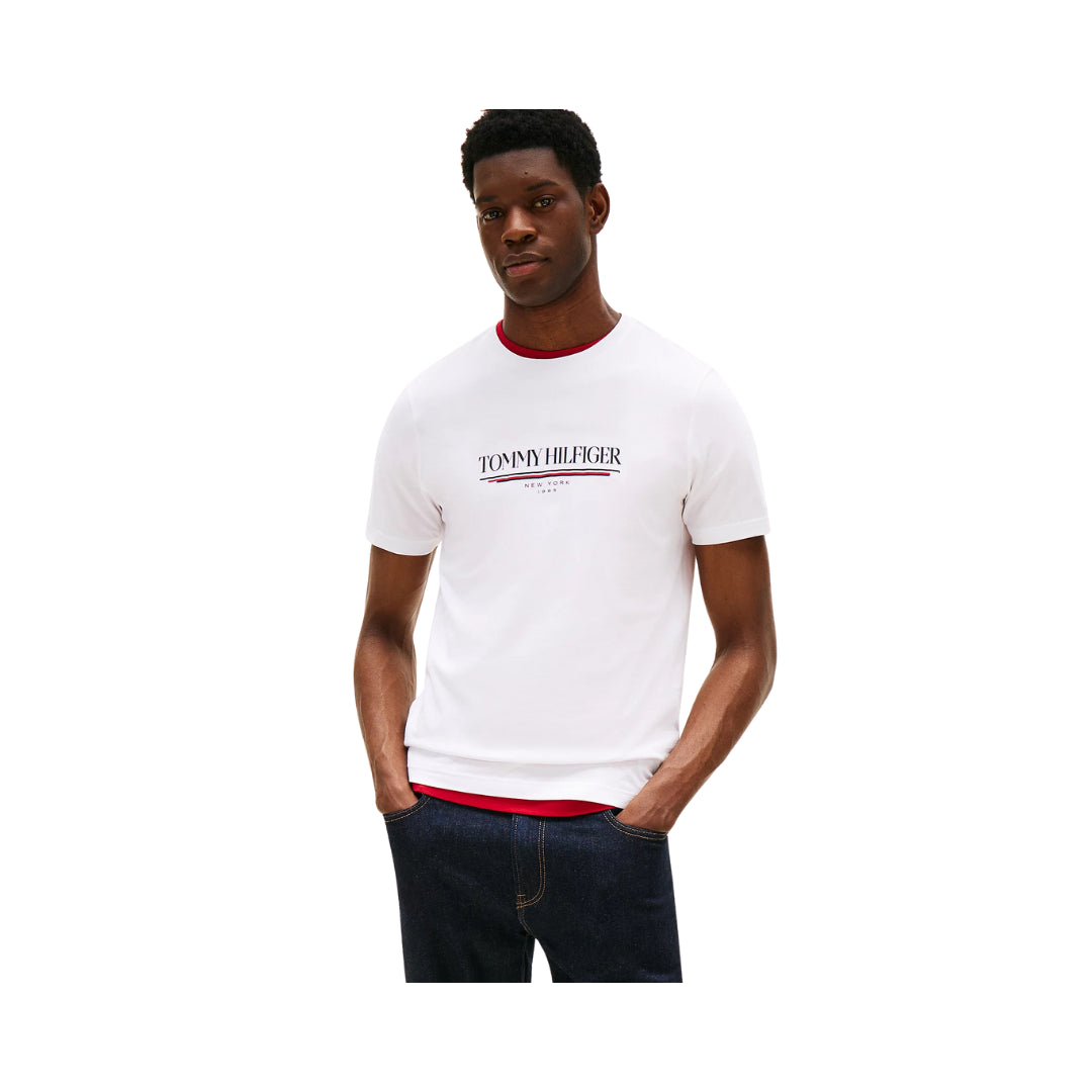 Il design è essenziale ma distintivo: il logo Tommy Hilfiger stampato sul petto aggiunge un tocco di riconoscibilità immediata, mentre la bandierina ricamata sulla manica e il nastro iconico all’interno del collo sottolineano l’attenzione del brand ai dettagli. Il girocollo pulito e la linea regolare la rendono estremamente versatile: da indossare da sola con un paio di jeans per un look rilassato, oppure sotto una giacca leggera per uno stile casual-elegante.