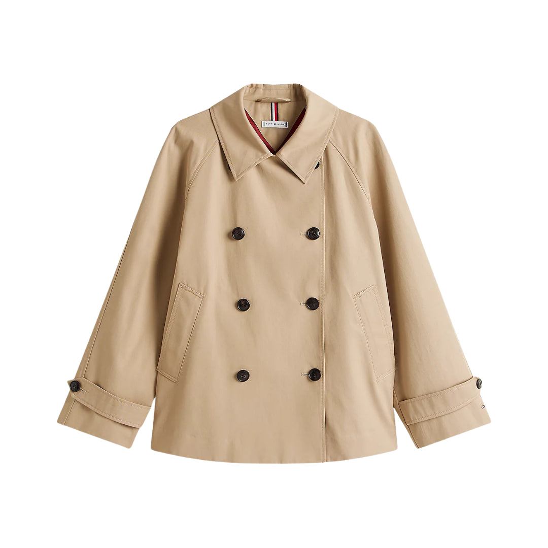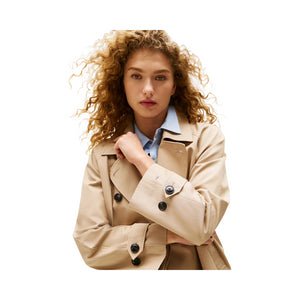 Un must-have del guardaroba moderno, reinterpretato con l’inconfondibile stile Tommy Hilfiger. Il trench corto beige è il capospalla perfetto per chi cerca un equilibrio tra eleganza e praticità nella stagione estiva o nelle fresche giornate di transizione. Realizzato in puro cotone idrorepellente, offre una protezione leggera ma efficace contro vento e pioggia leggera, mantenendo una sensazione di comfort e freschezza sulla pelle.