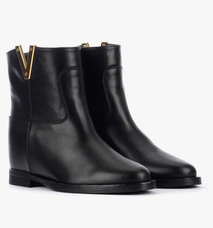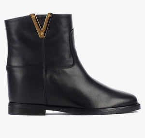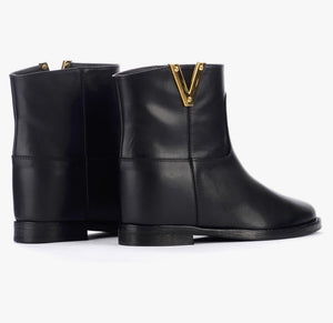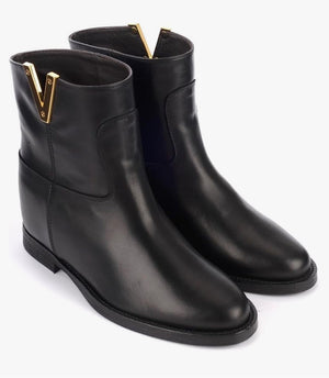Tronchetto VIA ROMA 15 nero con zeppa interna, in pelle con V oro.