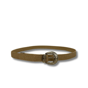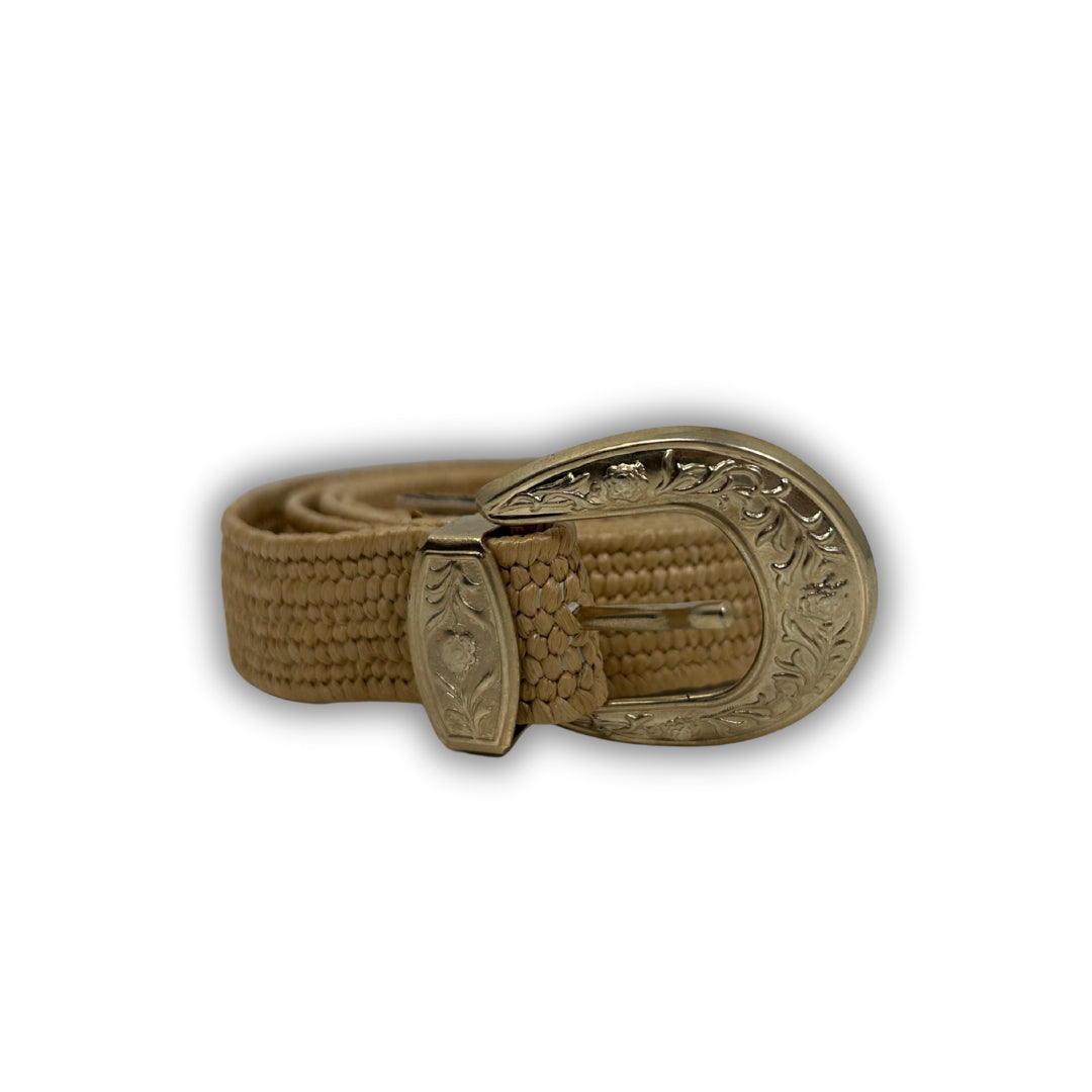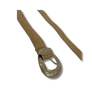 Completa il tuo look estivo con un accessorio che fa la differenza: la cinta beige firmata Vicolo. Realizzata in tessuto intrecciato dall’effetto naturale, è leggera, versatile e perfetta per la stagione calda. Il colore neutro la rende facile da abbinare, mentre la fibbia con incisioni decorative aggiunge un tocco sofisticato e dal gusto leggermente western, senza rinunciare all’eleganza.
