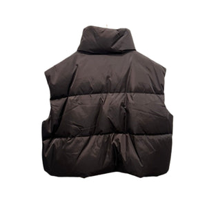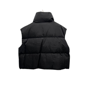 Gilet oversized imbottito in tessuto tecnico. Chiusura frontale con zip in metallo e bottoni a pressione. Tasche laterali alla francese. Collo alto.