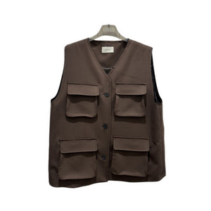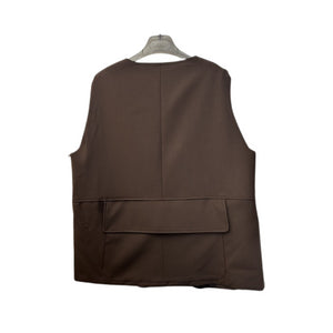 Questo gilet firmato Vicolo presenta un design funzionale e contemporaneo, perfetto per completare un look urbano e pratico. Realizzato in un tessuto tecnico e strutturato, il capo si distingue per la sua linea dritta e senza maniche, con una chiusura frontale a tre bottoni. Sul davanti sono presenti quattro tasche con patta, posizionate simmetricamente per offrire sia stile che praticità, ideali per portare con sé piccoli oggetti durante la giornata. Il retro è caratterizzato da un'ampia tasca orizzontale con patta, un dettaglio insolito che richiama lo stile utility e dona al capo un carattere deciso. Il taglio pulito e l’assenza di colletto enfatizzano la versatilità del gilet, rendendolo adatto sia per outfit casual che per look più strutturati a strati. Un capo pensato per chi ama l’equilibrio tra moda e funzionalità.