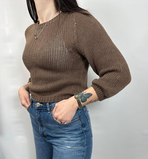Maglia color Beige Vicolo. Modello basic regolare girocollo con manica a palloncino.