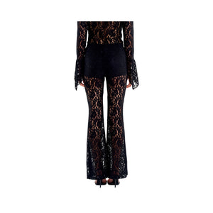 Pantalone a zampetta in pizzo. Con elastico in vita. Con culotte inclusa.