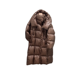 Questo piumino lungo Vicolo unisce eleganza e funzionalità in un unico capo pensato per la stagione più fredda. Realizzato in un tessuto lucido e morbido al tatto, presenta un sofisticato colore cioccolato che valorizza la silhouette senza rinunciare alla praticità. L’imbottitura in vera piuma garantisce una protezione termica eccellente, mentre la trapuntatura a maxi quadri crea un volume armonioso e moderno.